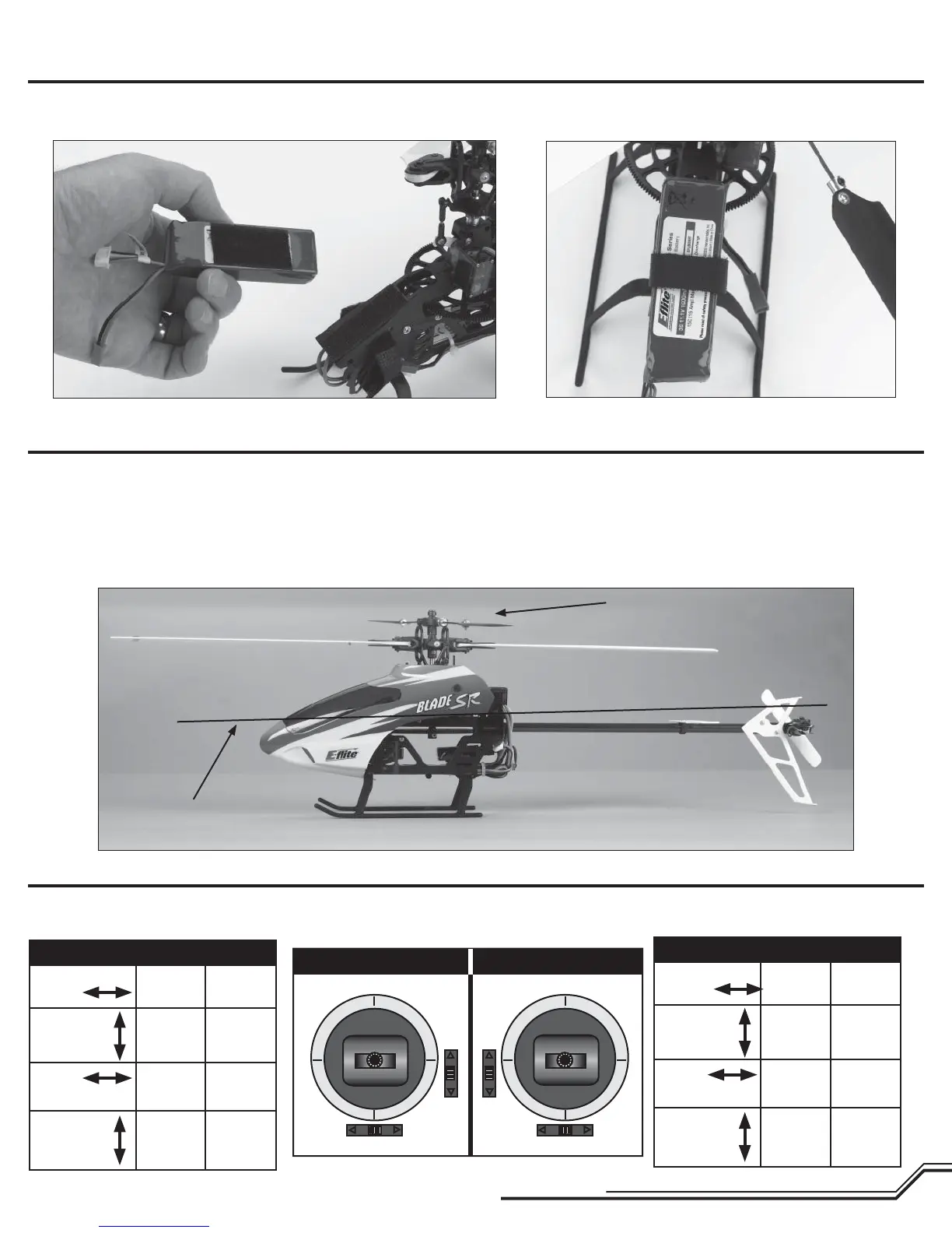 rechwinklig nach links und rechts. Heben Sie den Helikopter an der Paddelstange hoch. Er sollte gerade oder etwas nach vorne unten