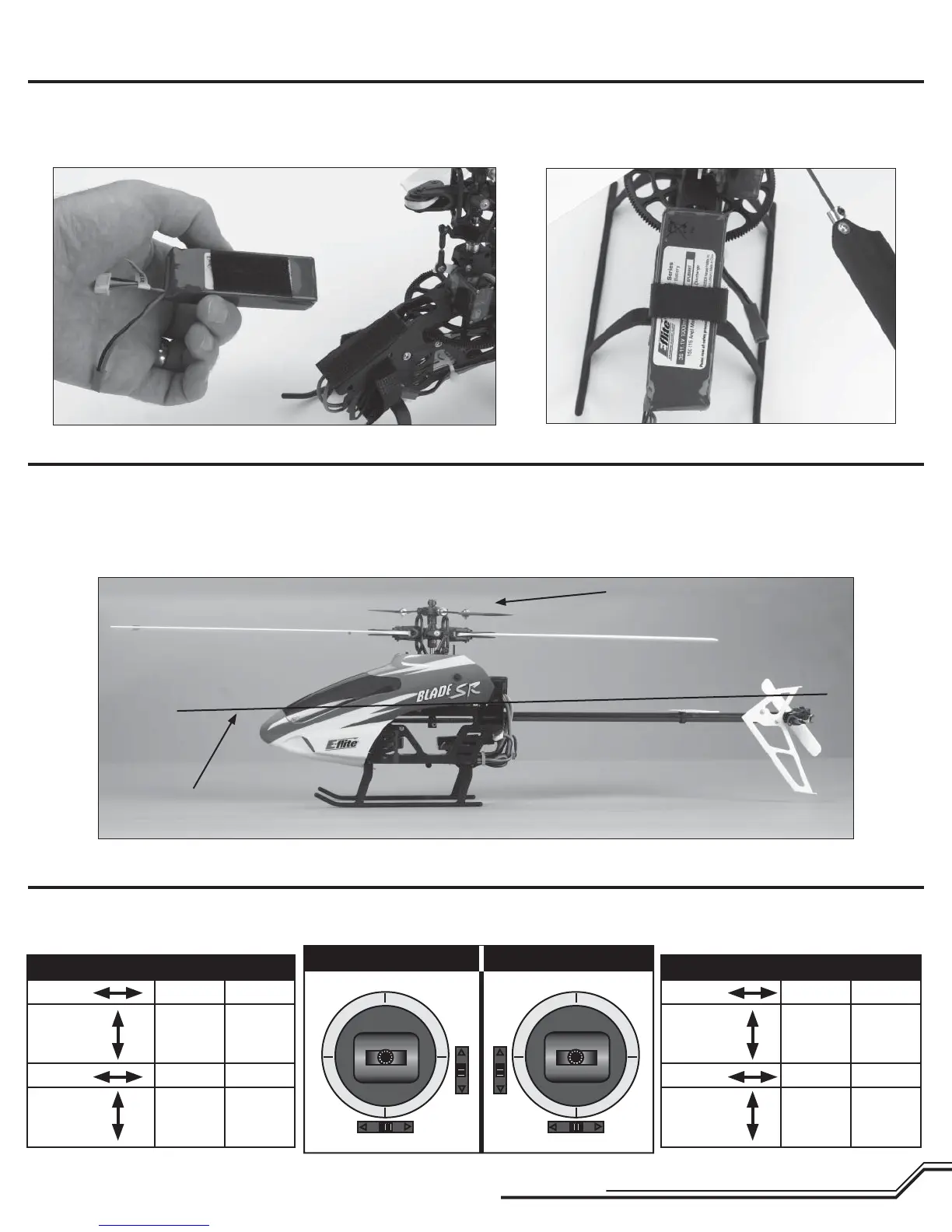 ment horizontale. Vous devriez toujours contrôler le CG (centre de gravité) de votre Blade SR avant de voler en particulier dans le cas où