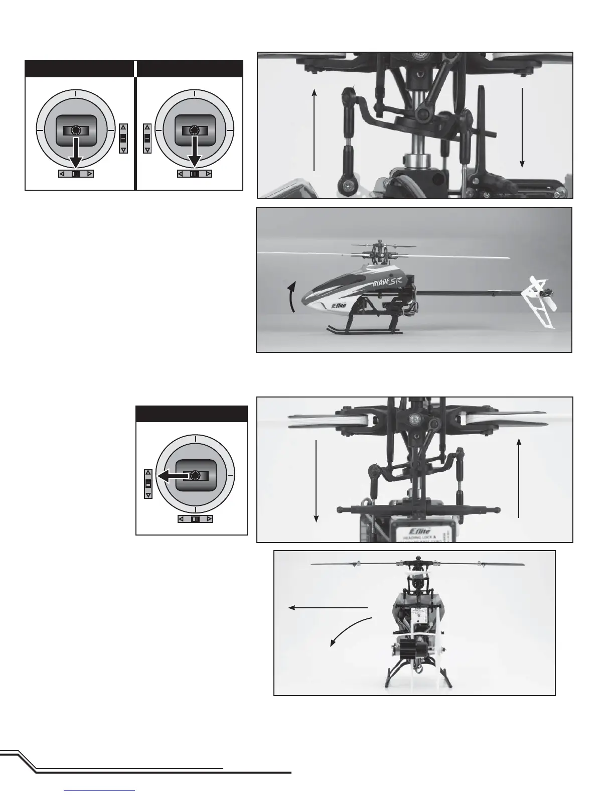 droite pour contrôler la commande du cyclique latéral (aileron). Lorsque la manette est poussée vers la gauche, le plateau cyclique doit