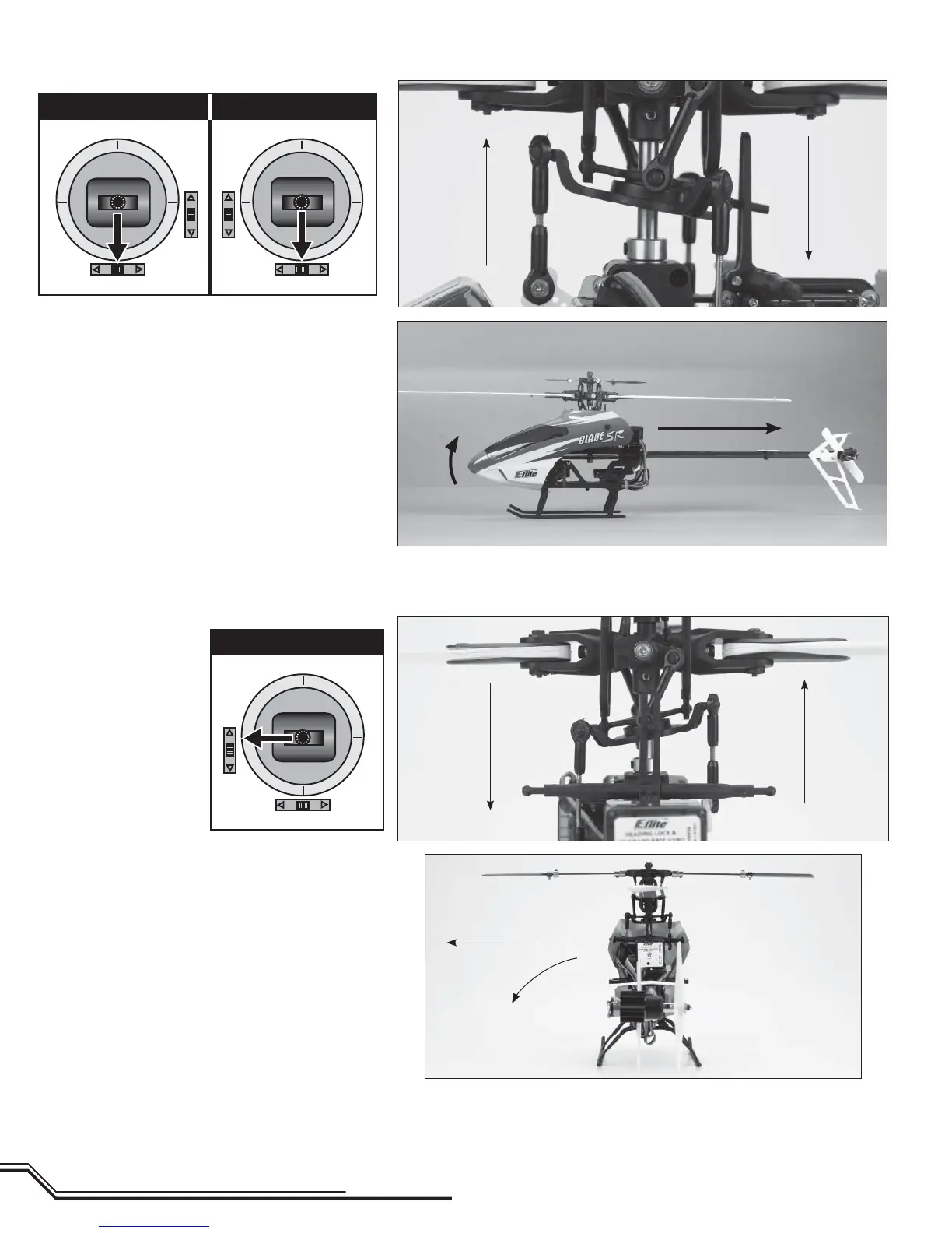 Osservando l’elicottero dalla parte posteriore (con l’albero di coda rivolto verso di voi), muovere lo stick di destra da sinistra a destra per