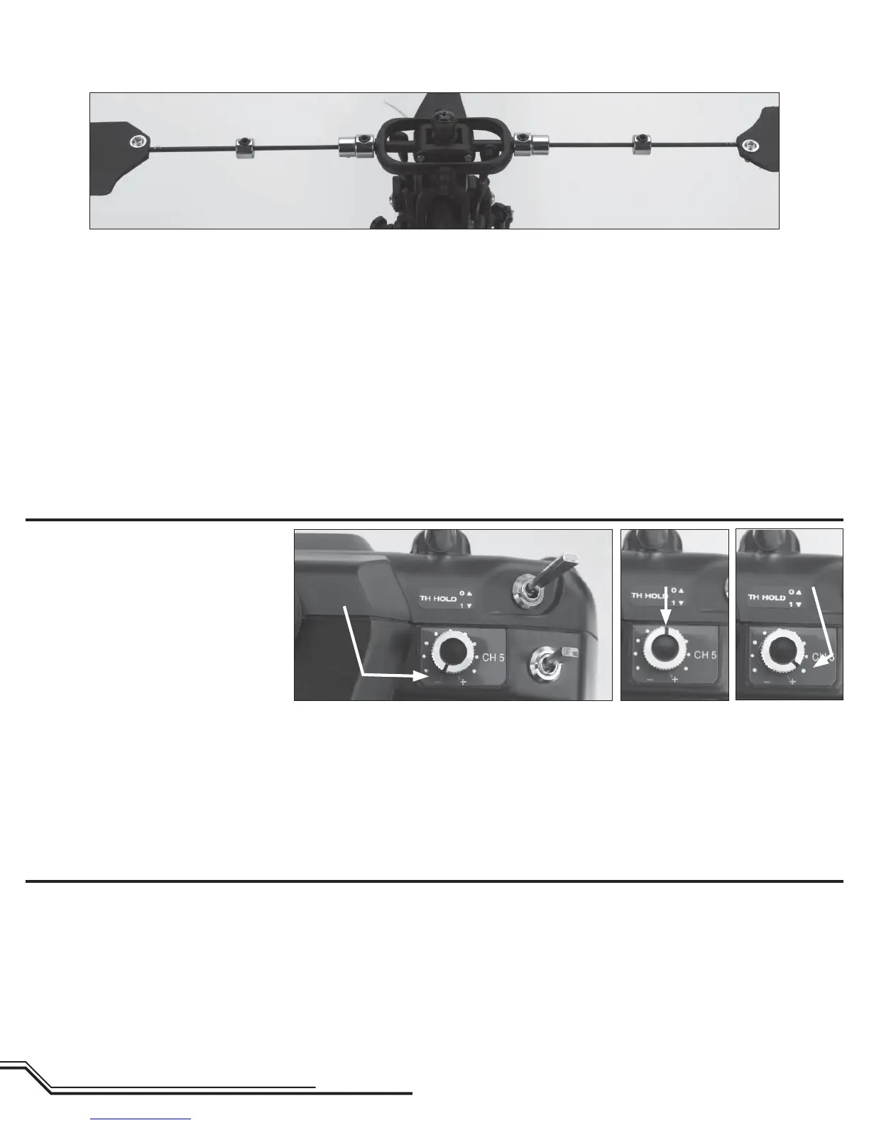 Nota: È importante che il peso(i) su ogni lato della fl ybar siano posizionati equidistanti dalla testa/albero principale in modo da