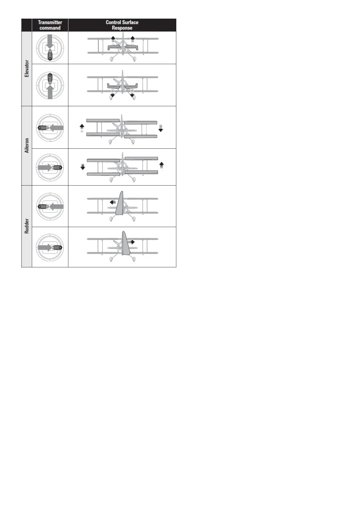 2. Move the entire aircraft as shown and ensure the control surfaces move in the direction indicated in the graphic. If the control surfaces