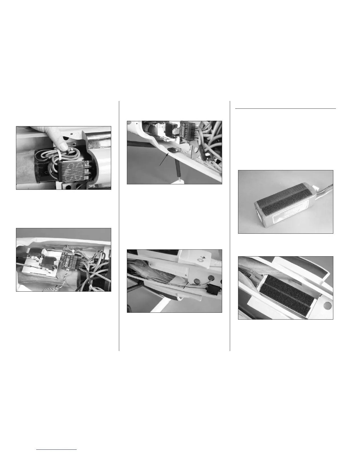 the fuselage. Plug the leads for the servos into
