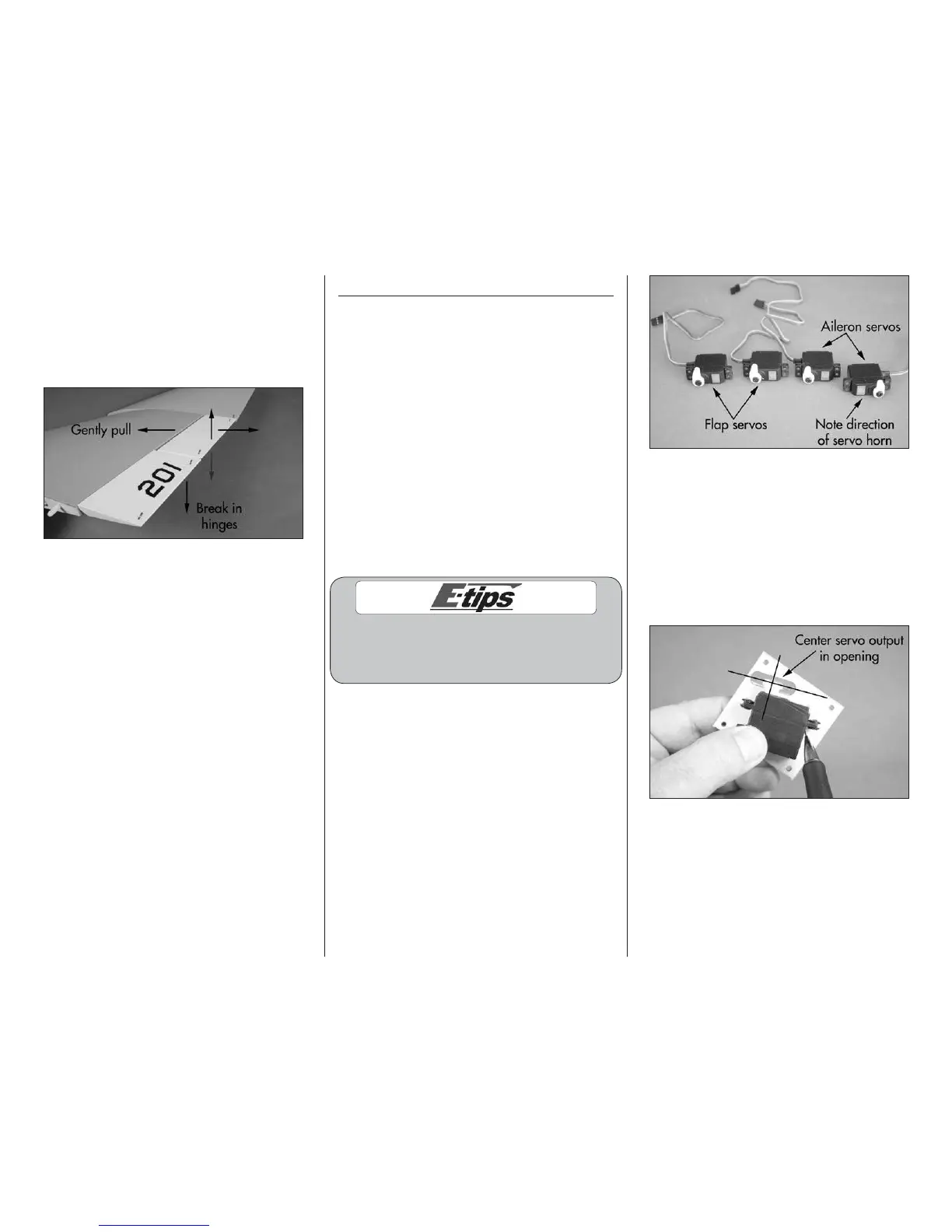 1. Prepare the aileron and flap servos by installing