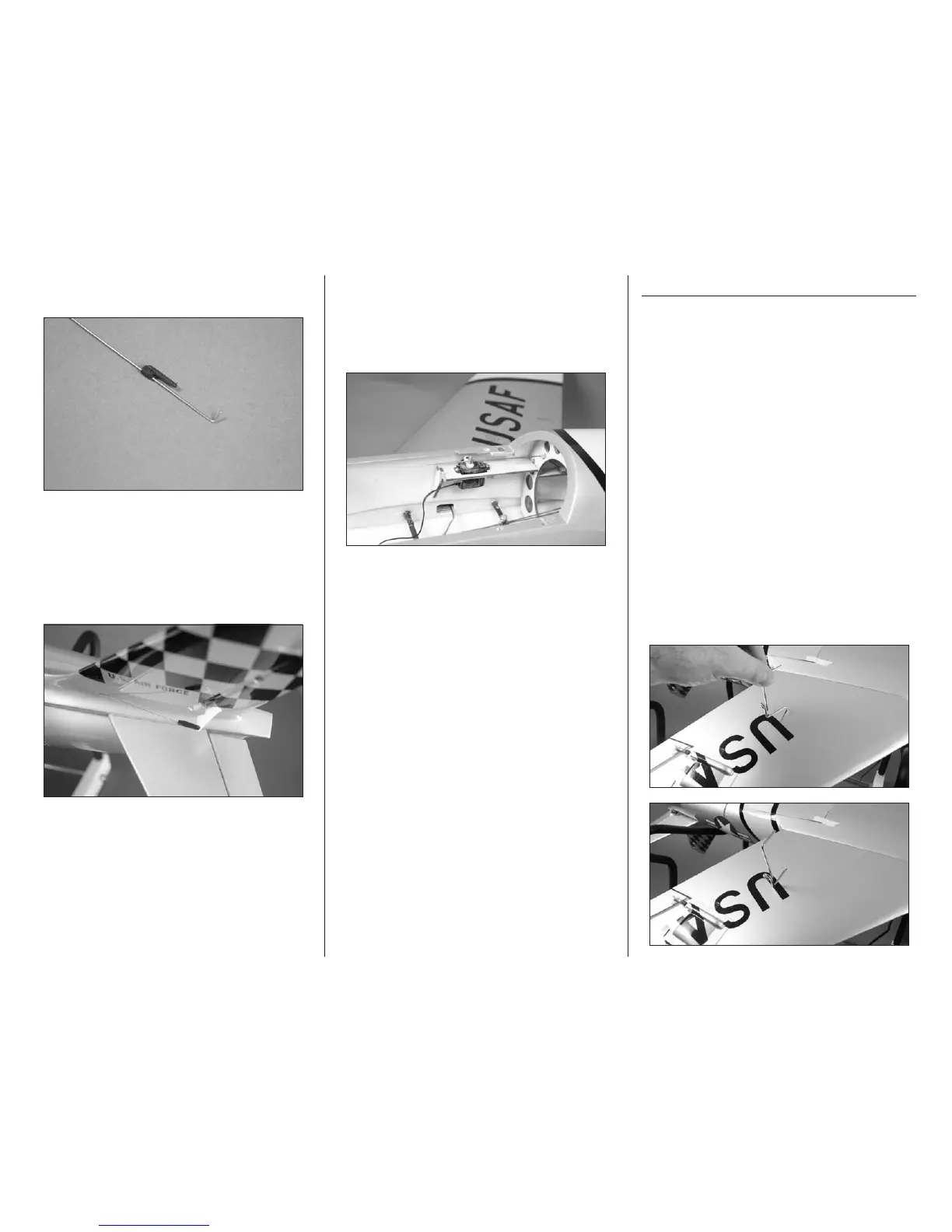 the control horn. Slide the rudder pushrod in the
