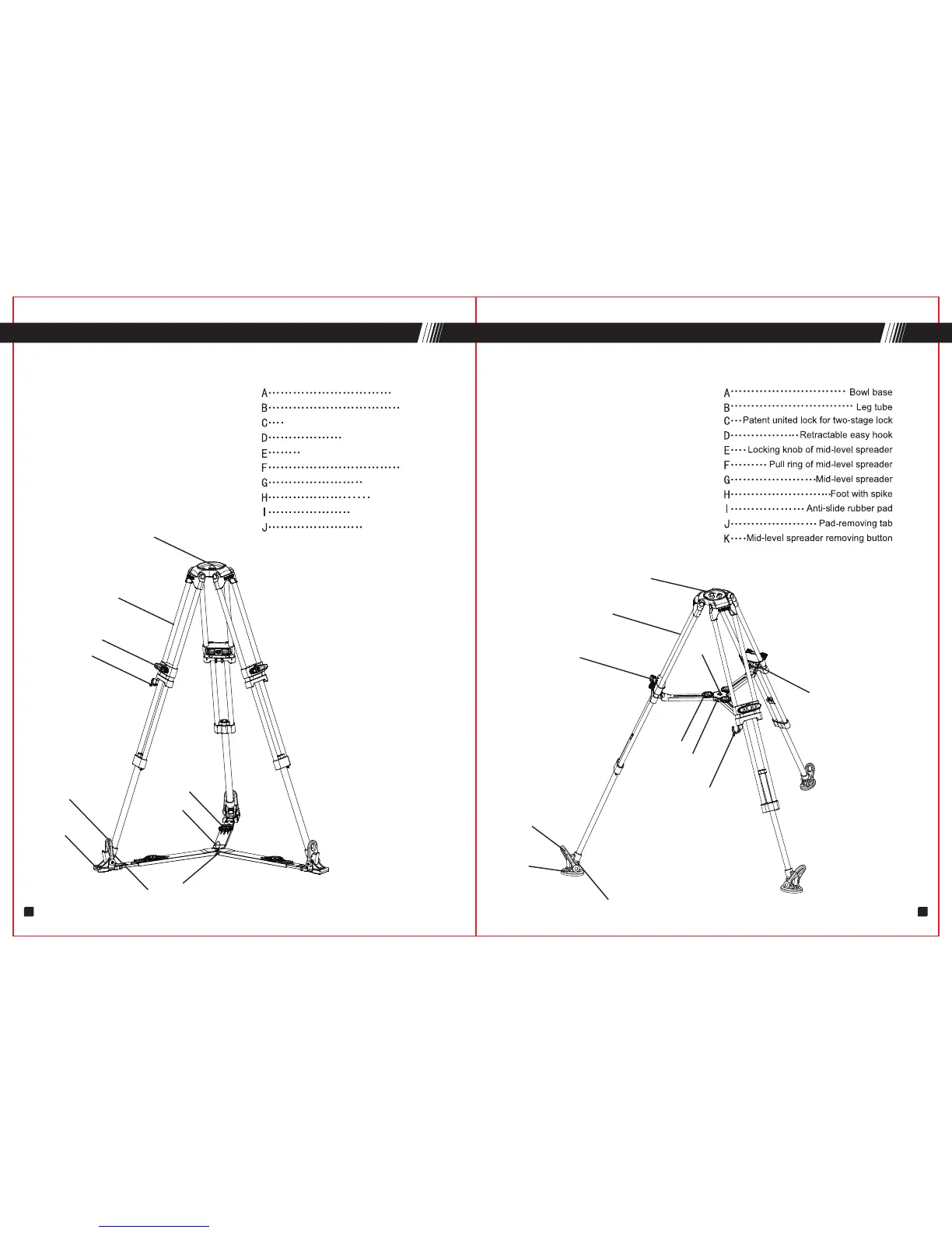 E-Image GH03 - GA102;GC102 Tripod Parts Identification; GA102;GC102 Tripod Components; GA;GC751;GA;GC752 Tripod Parts Identification; GA;GC751;GA;GC752 Tripod Components