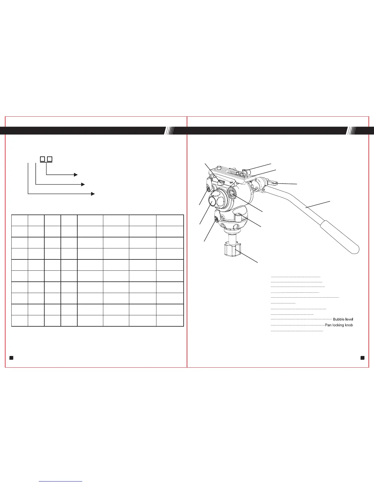 E-Image GH03 - Fluid Head Specifications; Fluid Head Model Specifications; GH03 Fluid Head Parts Identification; GH03 Fluid Head Components