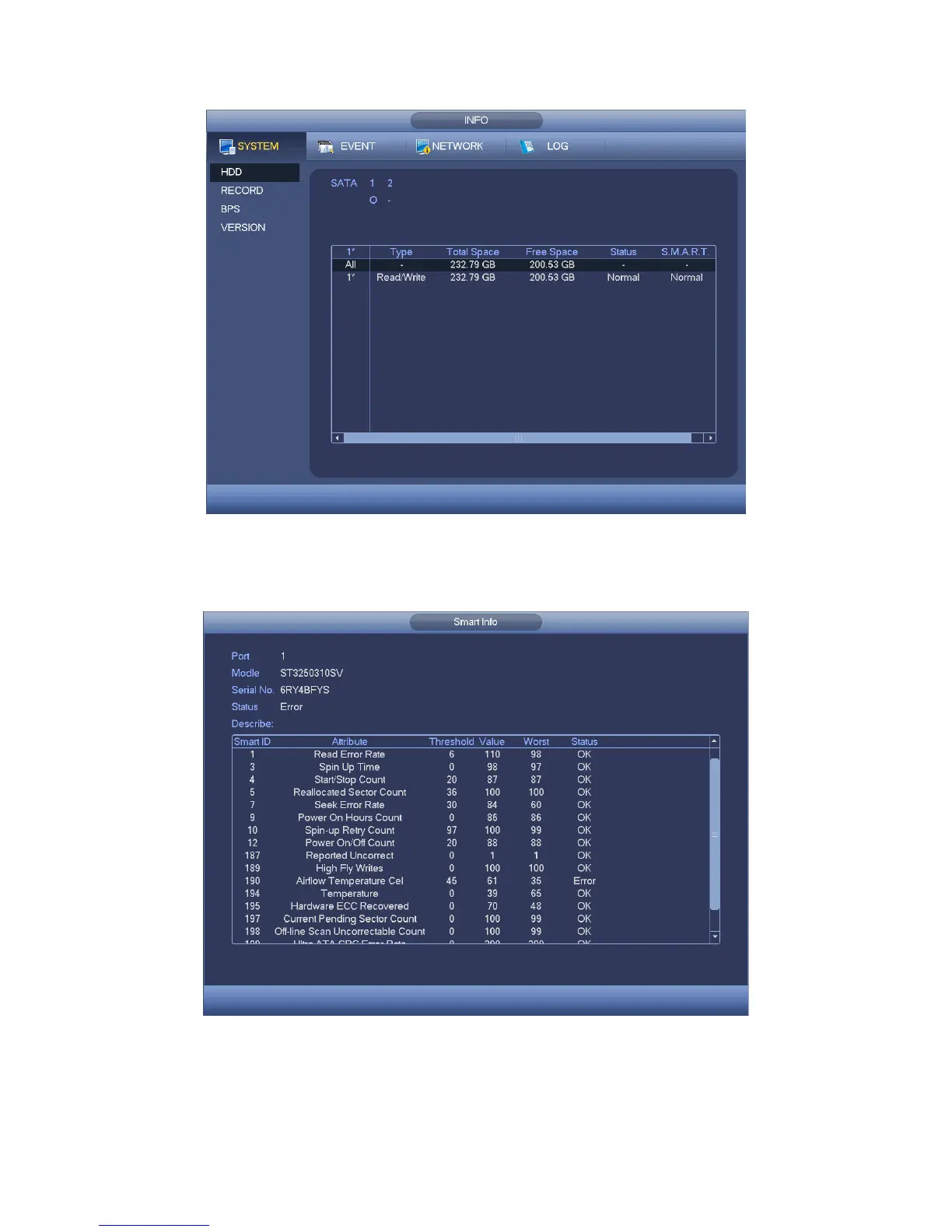 Double click one HDD information; you can see the HDD SMART information. See Figure