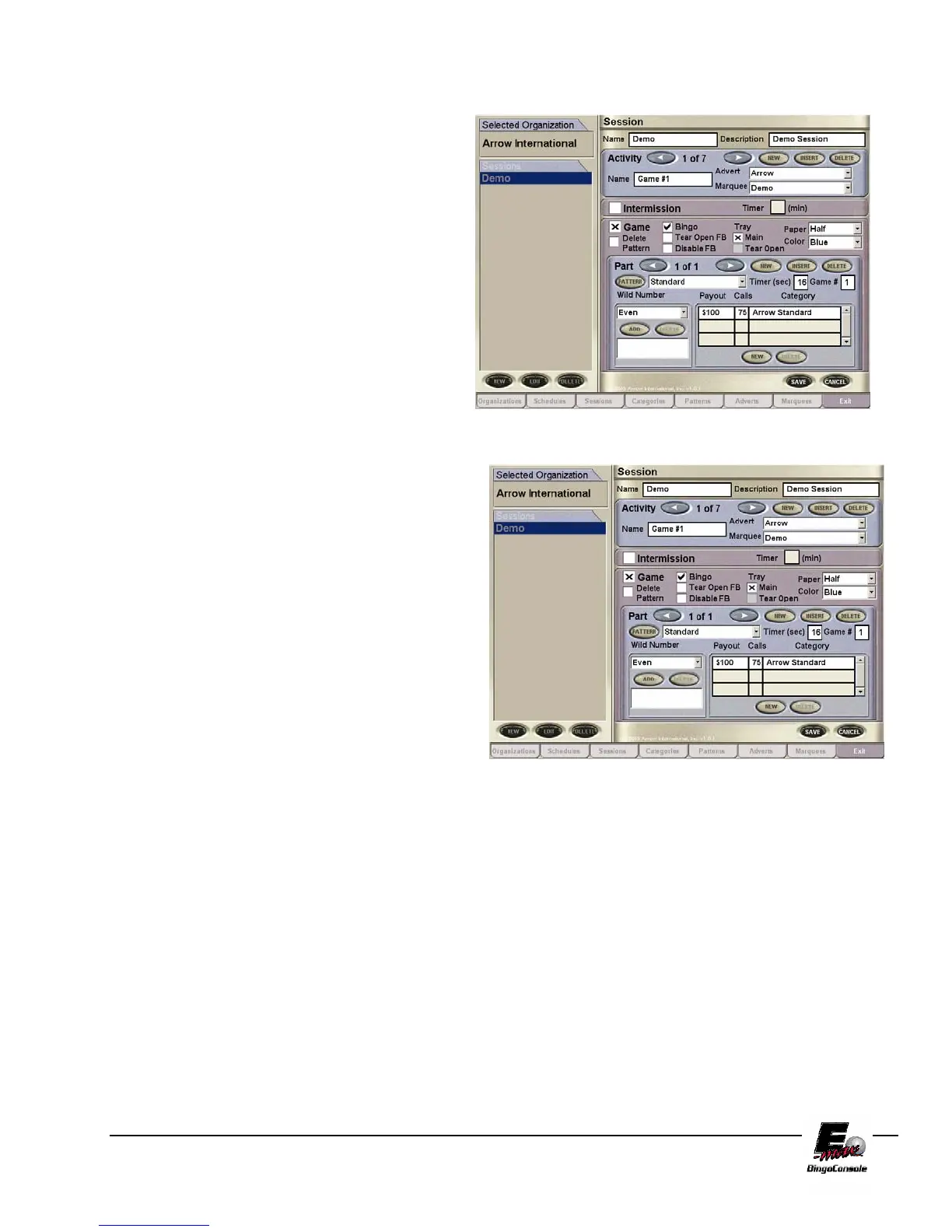 pattern games on the console. The Bingo and Tear Open checkbox’s enables you to select the output of that