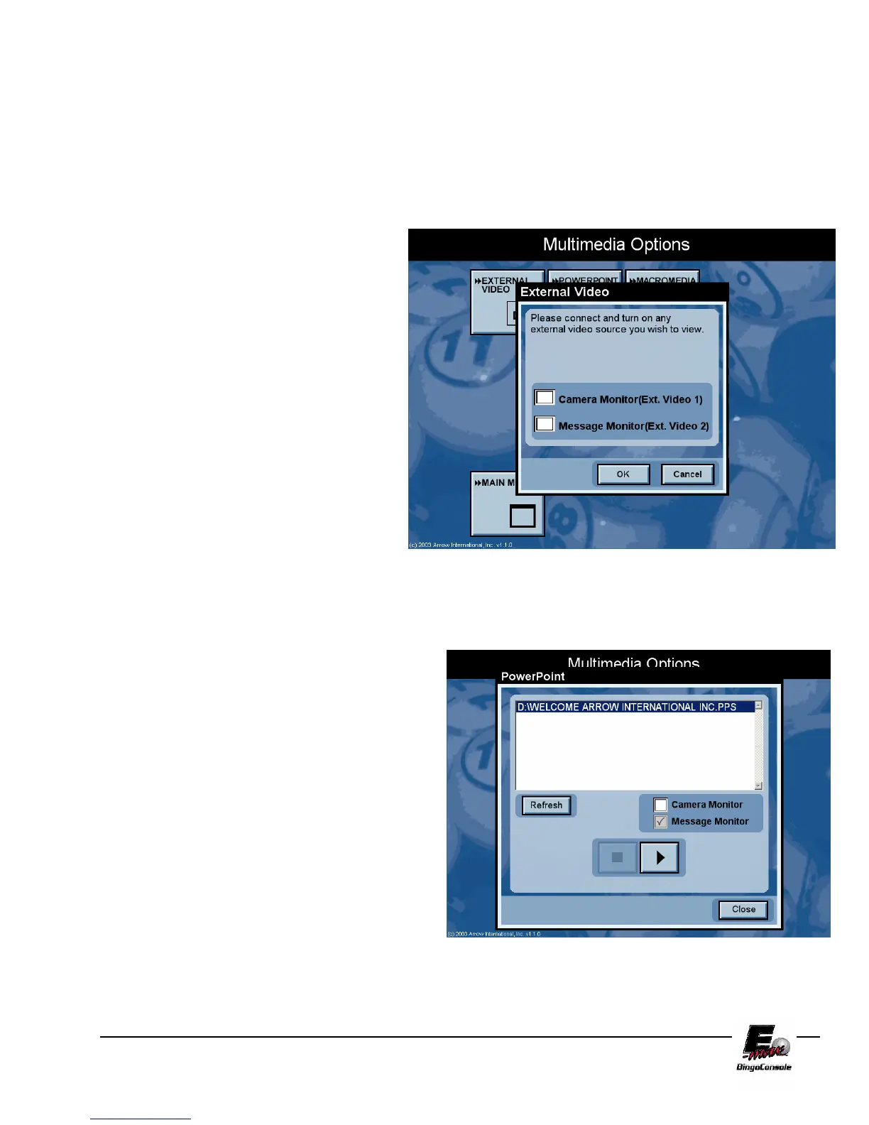 1. From the Multi Media Options Screen, touch the External Video button. This will bring up