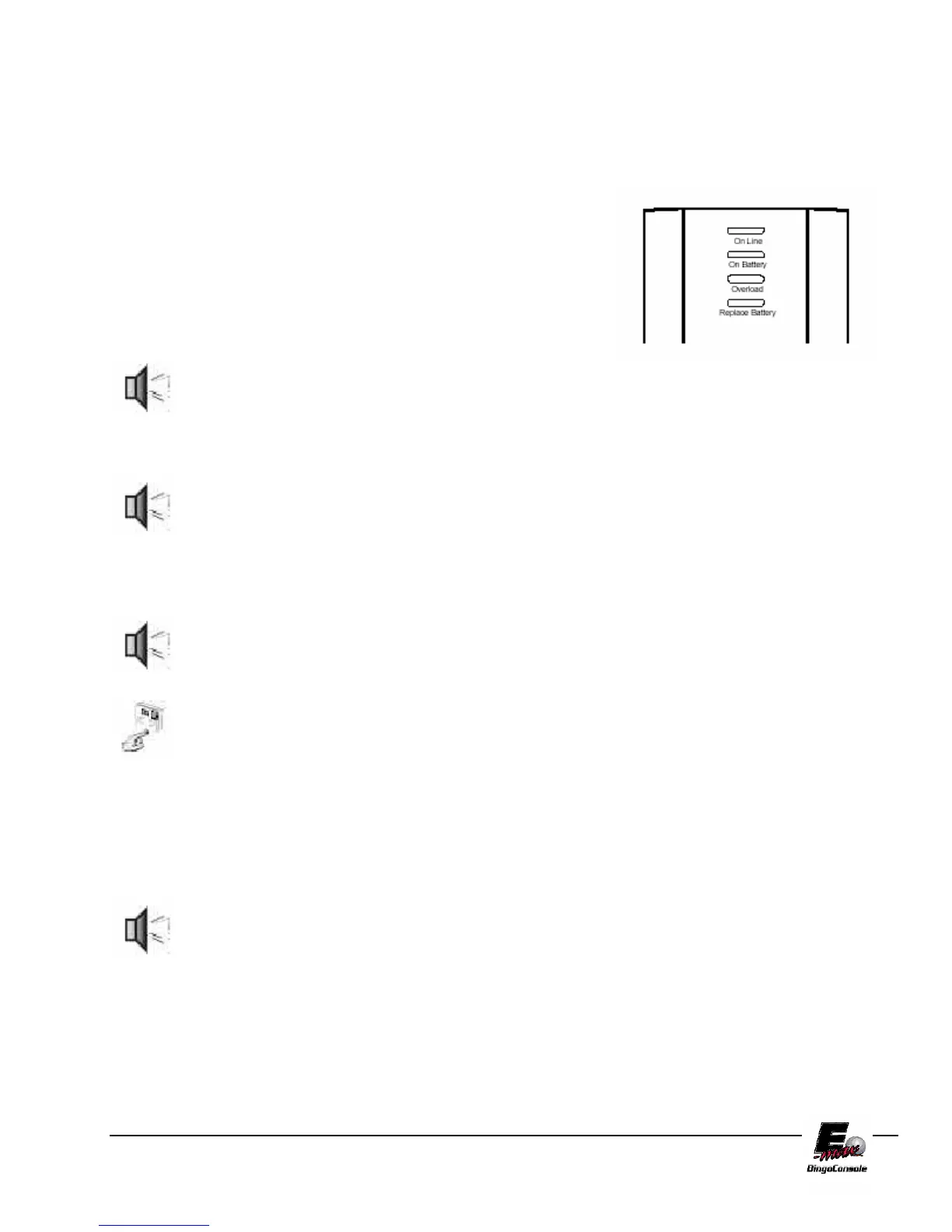 Continuous Tone – this alarm is sounded whenever the Battery Backup outlets are overloaded.