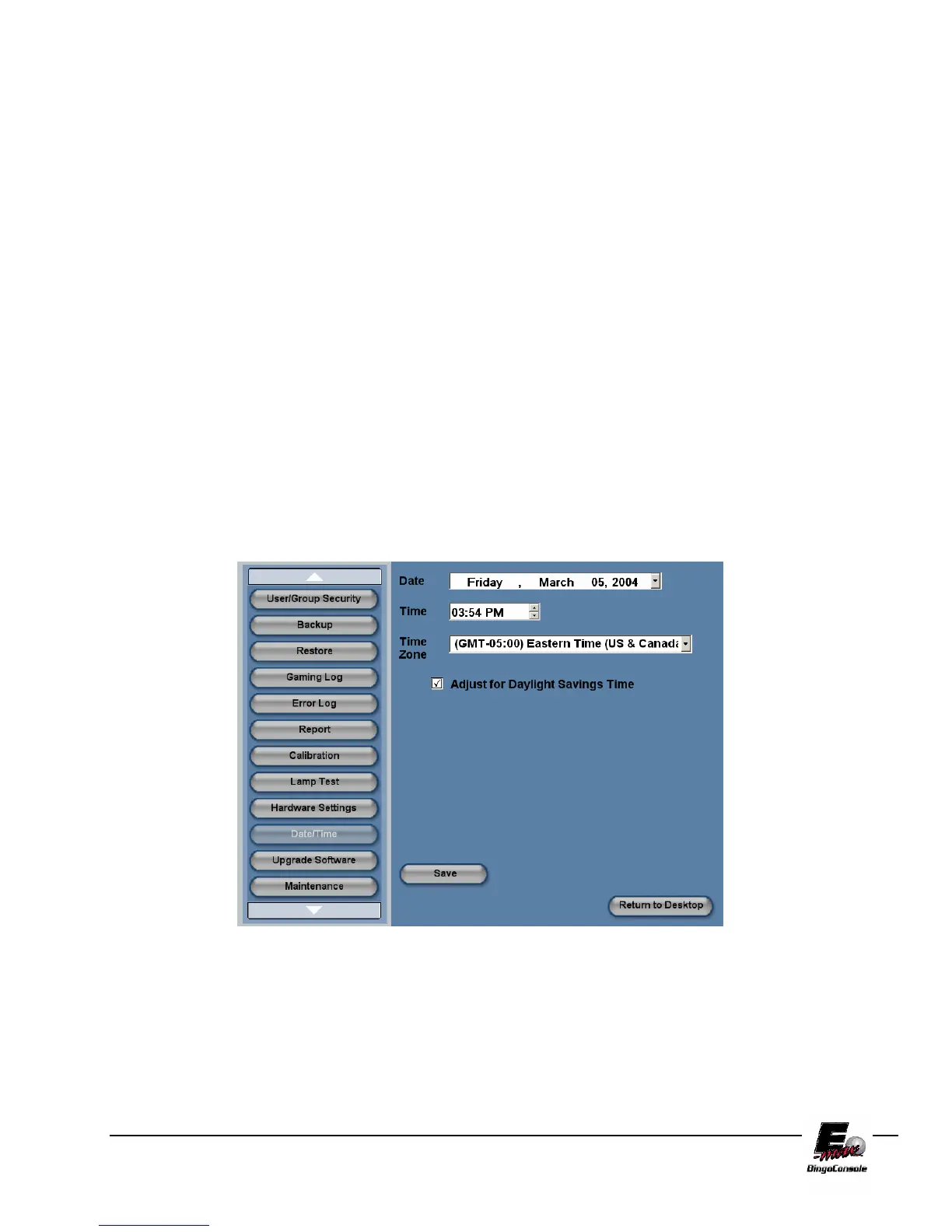 To set the E-max™ Date and Time, follow the procedure below and refer to figure 11.6