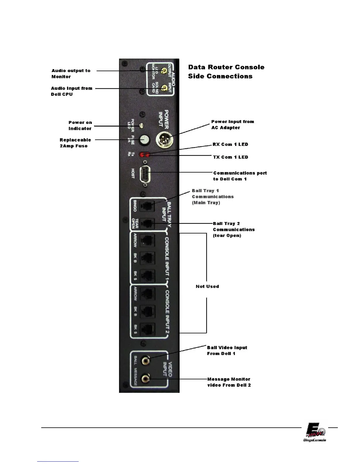 E-max BingoConsole - Data Router Console Side Connections
