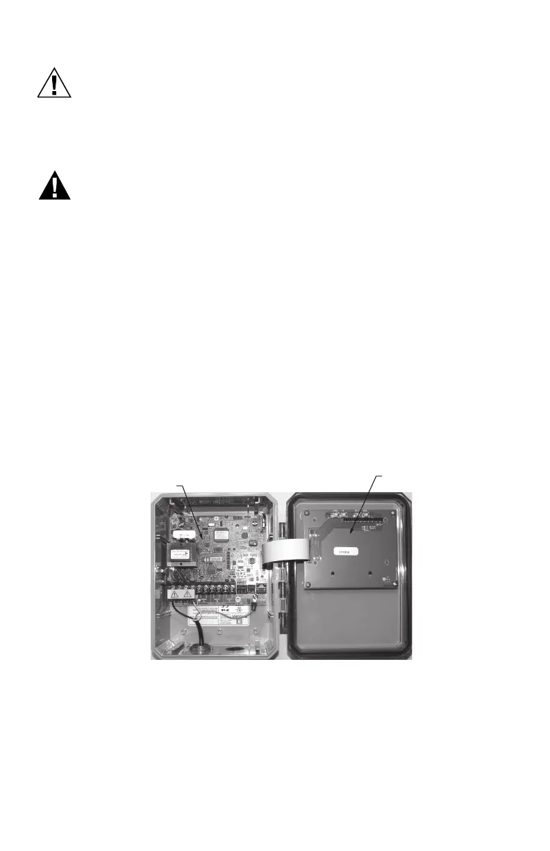 the display board. Both circuit boards are mounted inside a NEMA 4X enclosure.