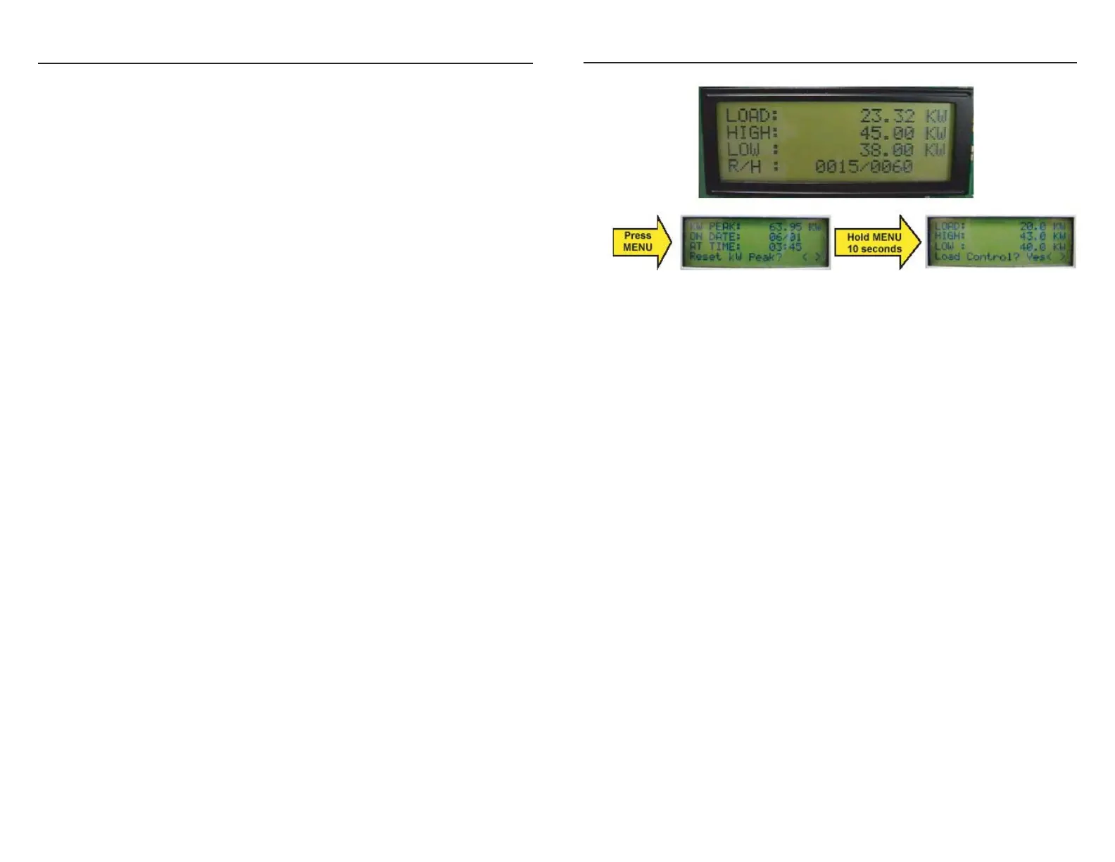 Reset kW peak?. After 10 seconds, the display will change to Load