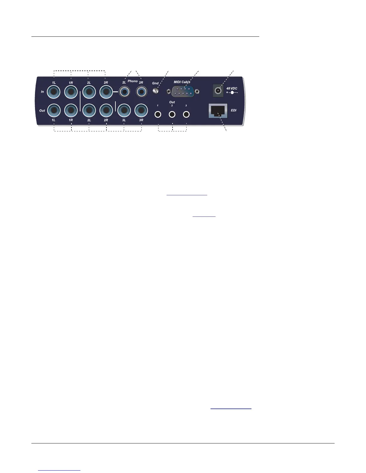 Six balanced 24-bit, line-level, analog outputs are provided (1-3). Output pair 1 is desig-