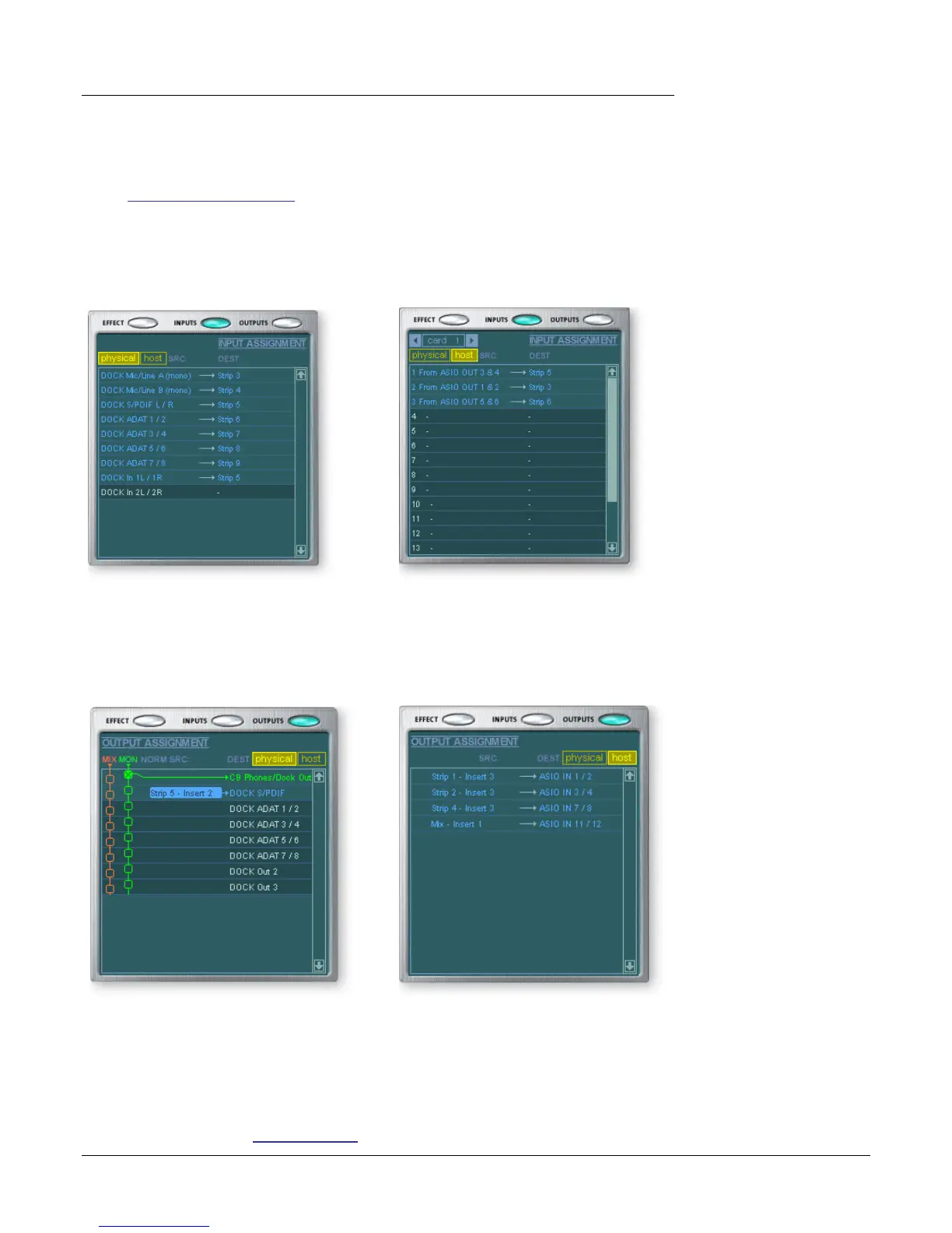 The input routings are divided into two categories: Physical Inputs and Host Inputs.