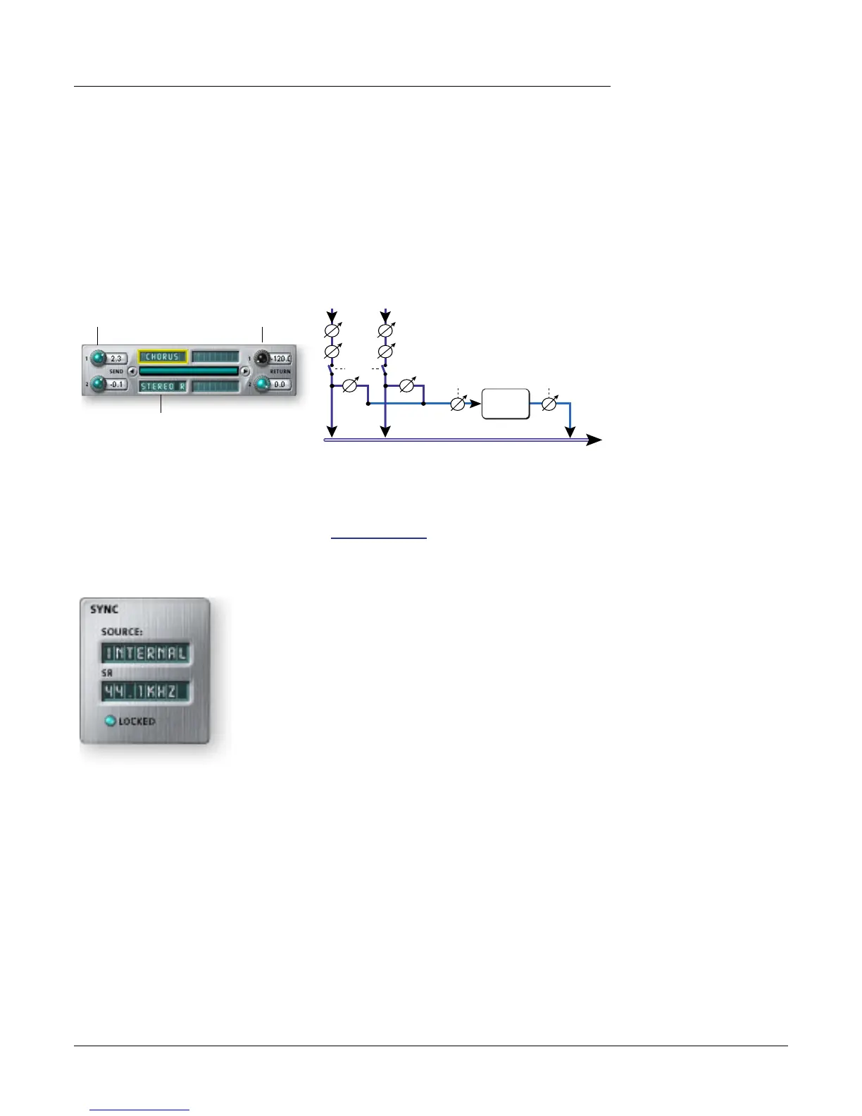 effect returns. This is called a sidechain routing because the aux signal takes a detour