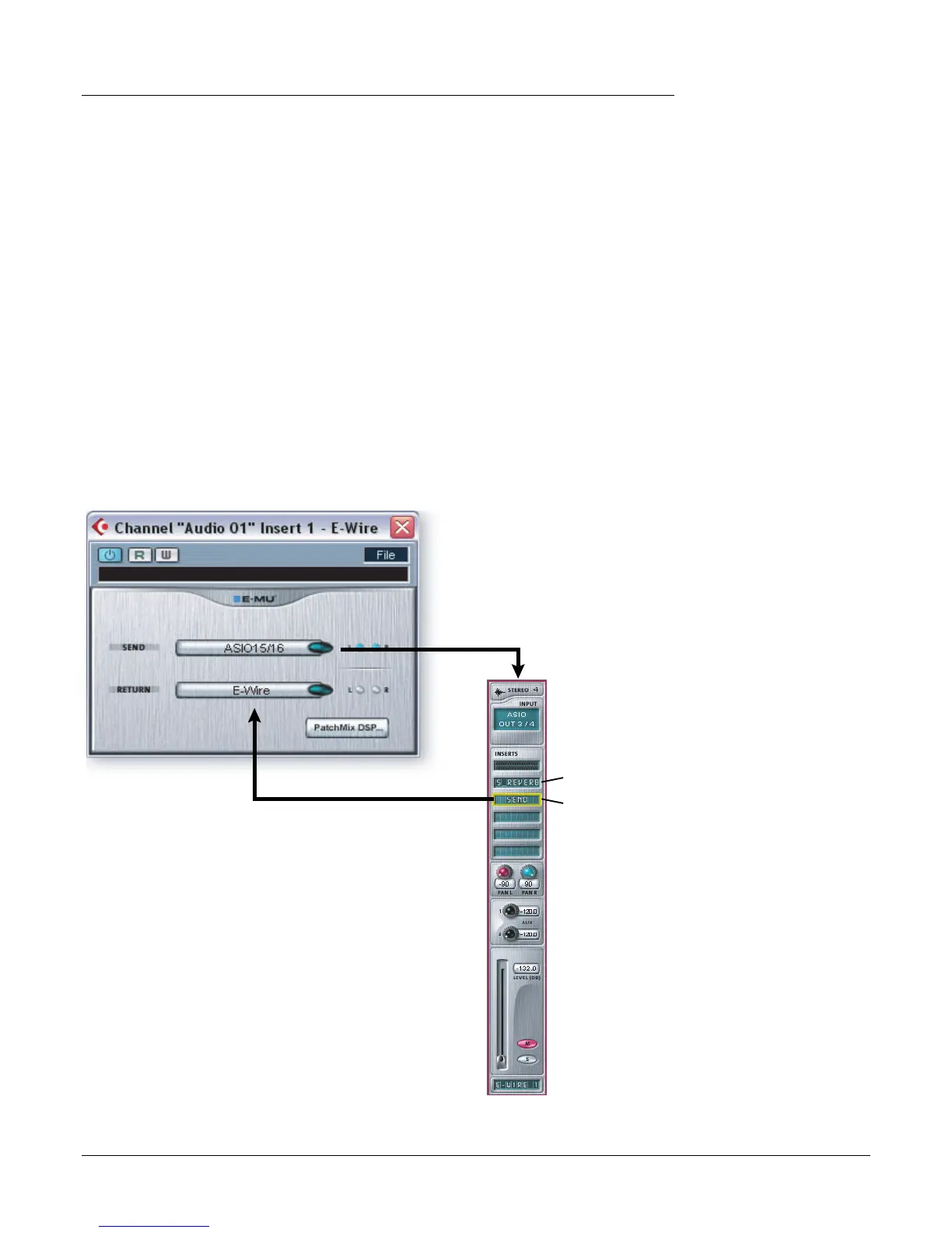 audio to a strip containing the desired effect. An ASIO Send routes the audio back to E-Wire VST.