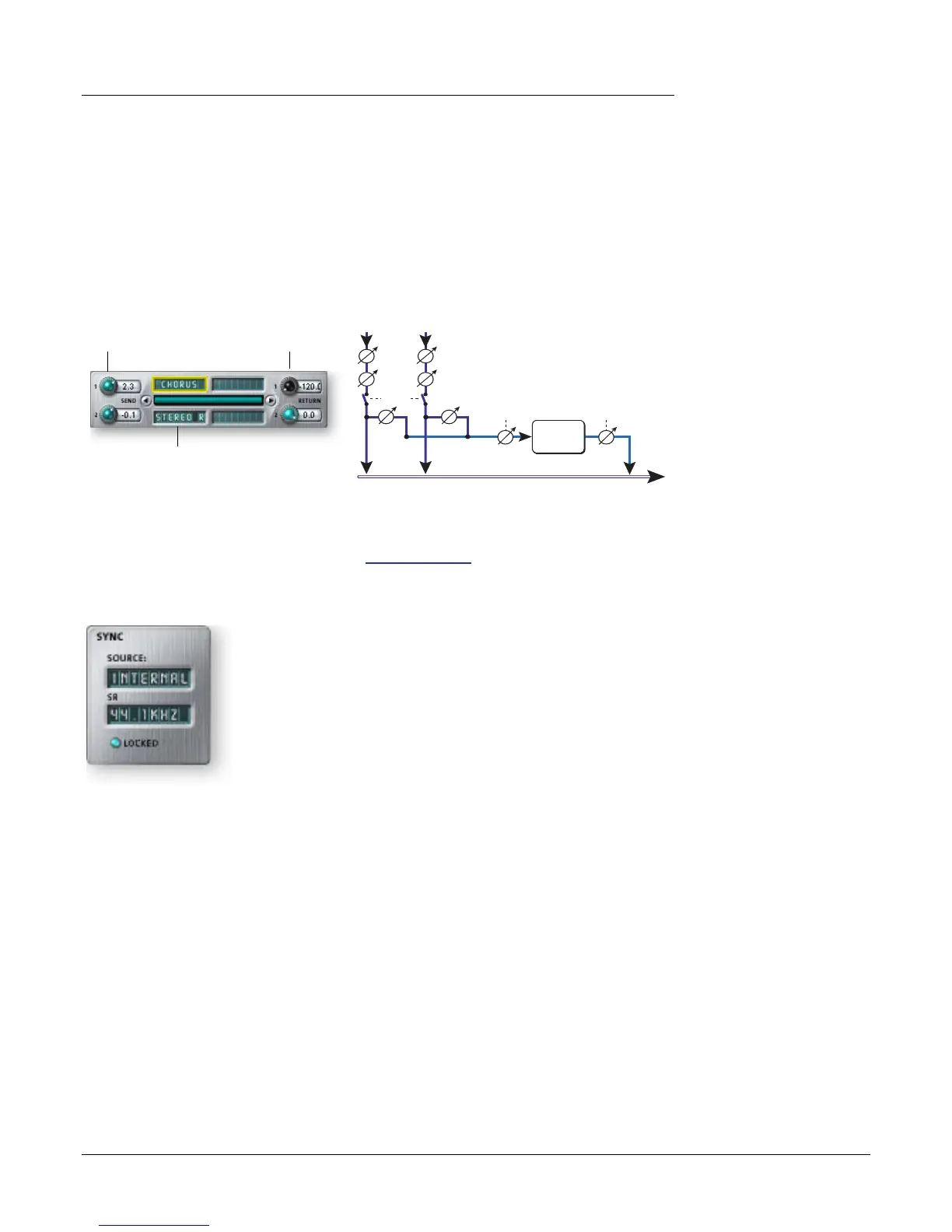 effect returns. This is called a sidechain routing because the aux signal takes a detour