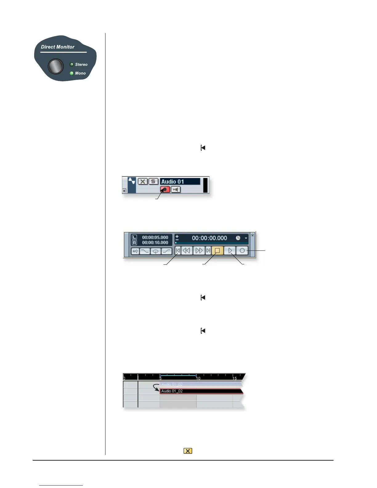 recording a mono track, set Direct Monitor to Mono by pressing the Direct