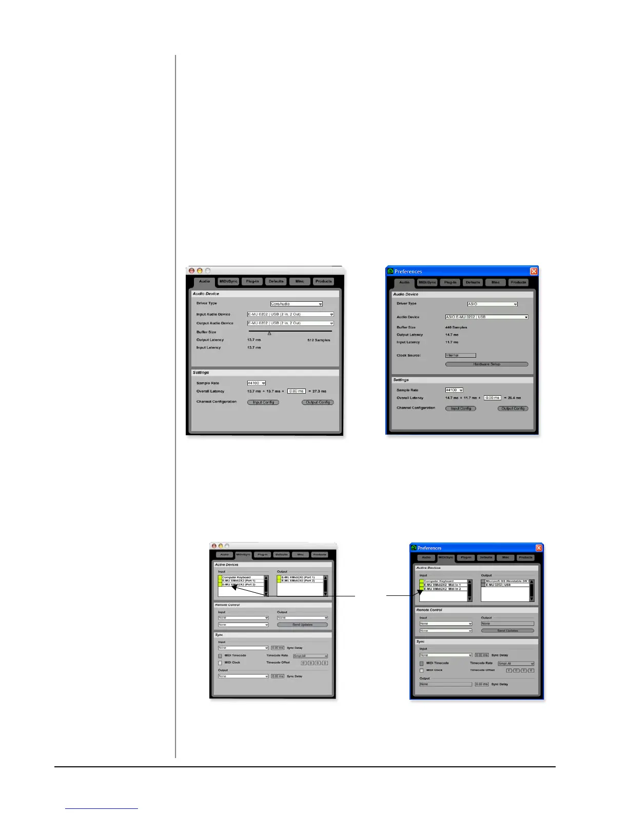 OS X Users: Select Core Audio and E-MU 0202|USB as the Audio Device.