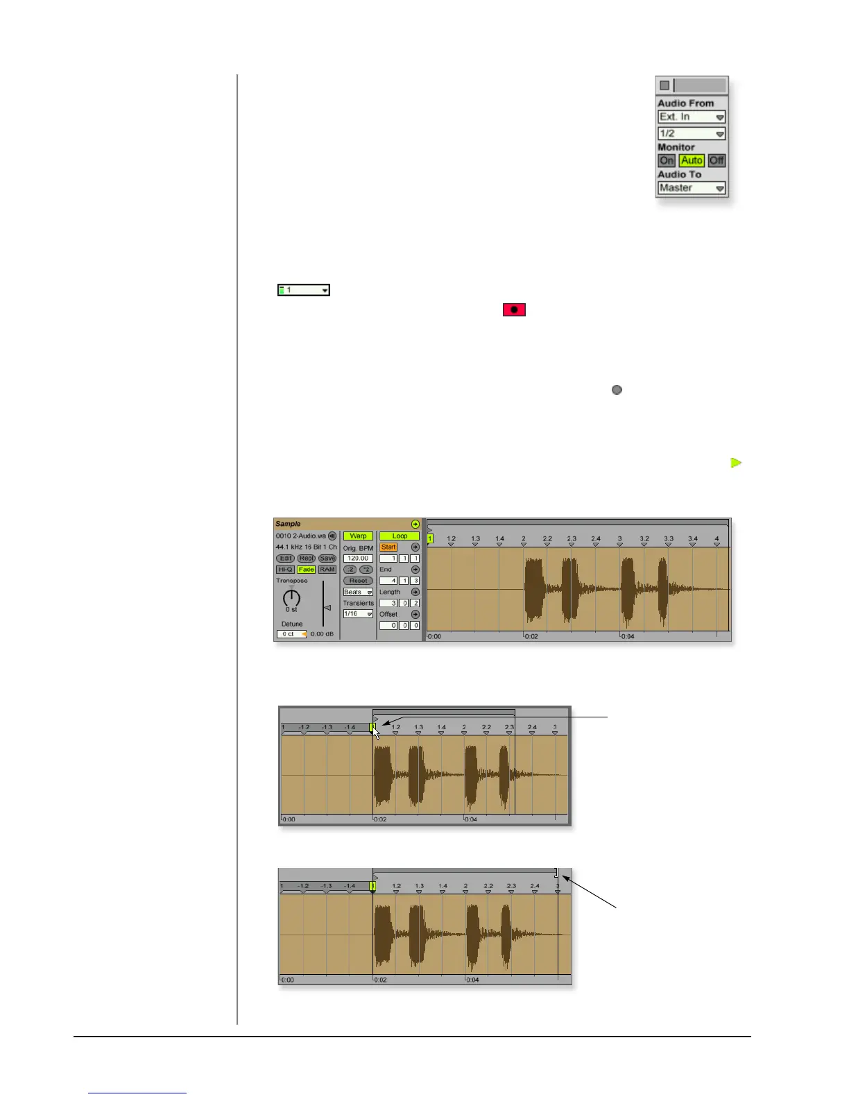 clips in Track 2. Recording begins immediately. After recording a bar or two,