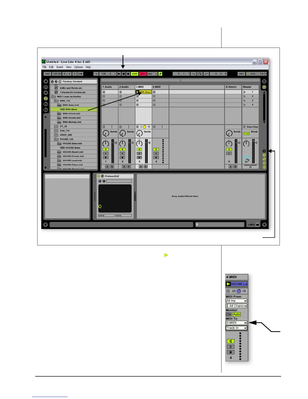 Ableton Live Lite 4 allows four MIDI tracks, so let’s play a different MIDI loop and