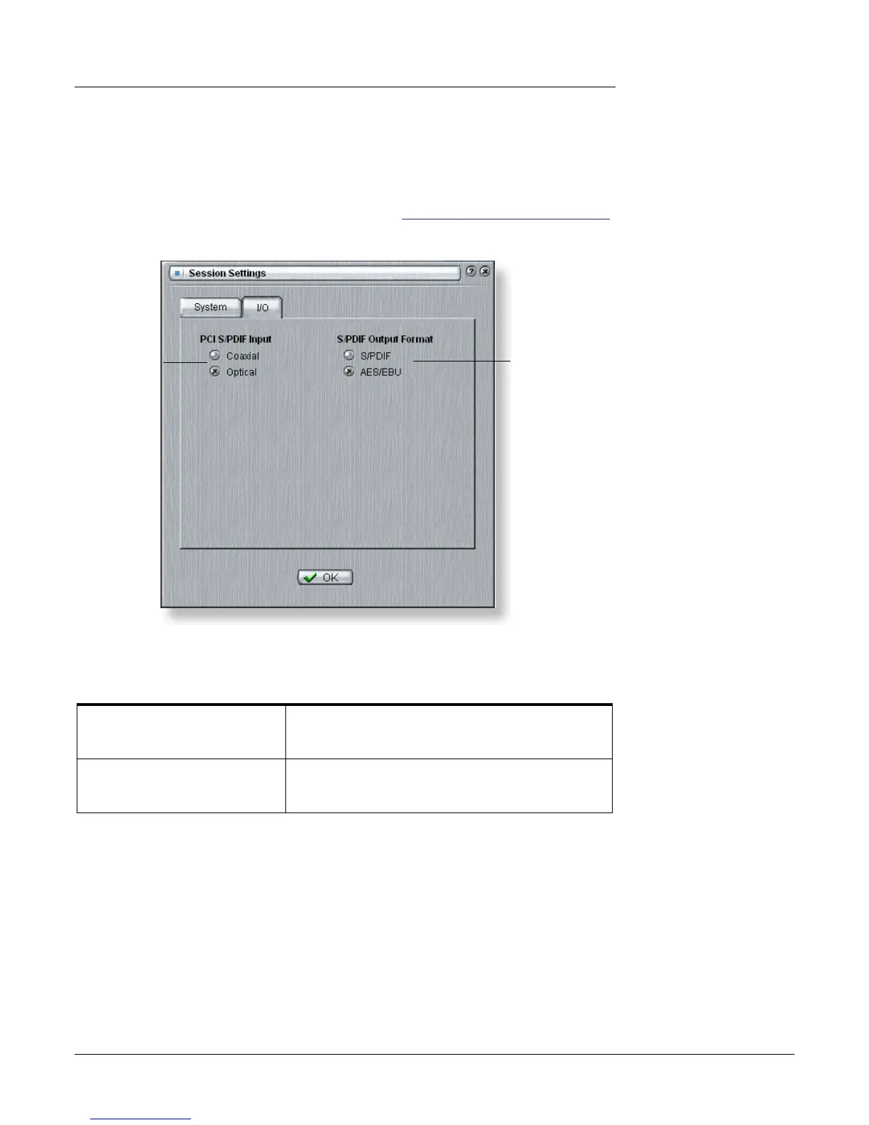 • S/PDIF Output Format Selects between S/PDIF or AES/EBU format for S/PDIF.