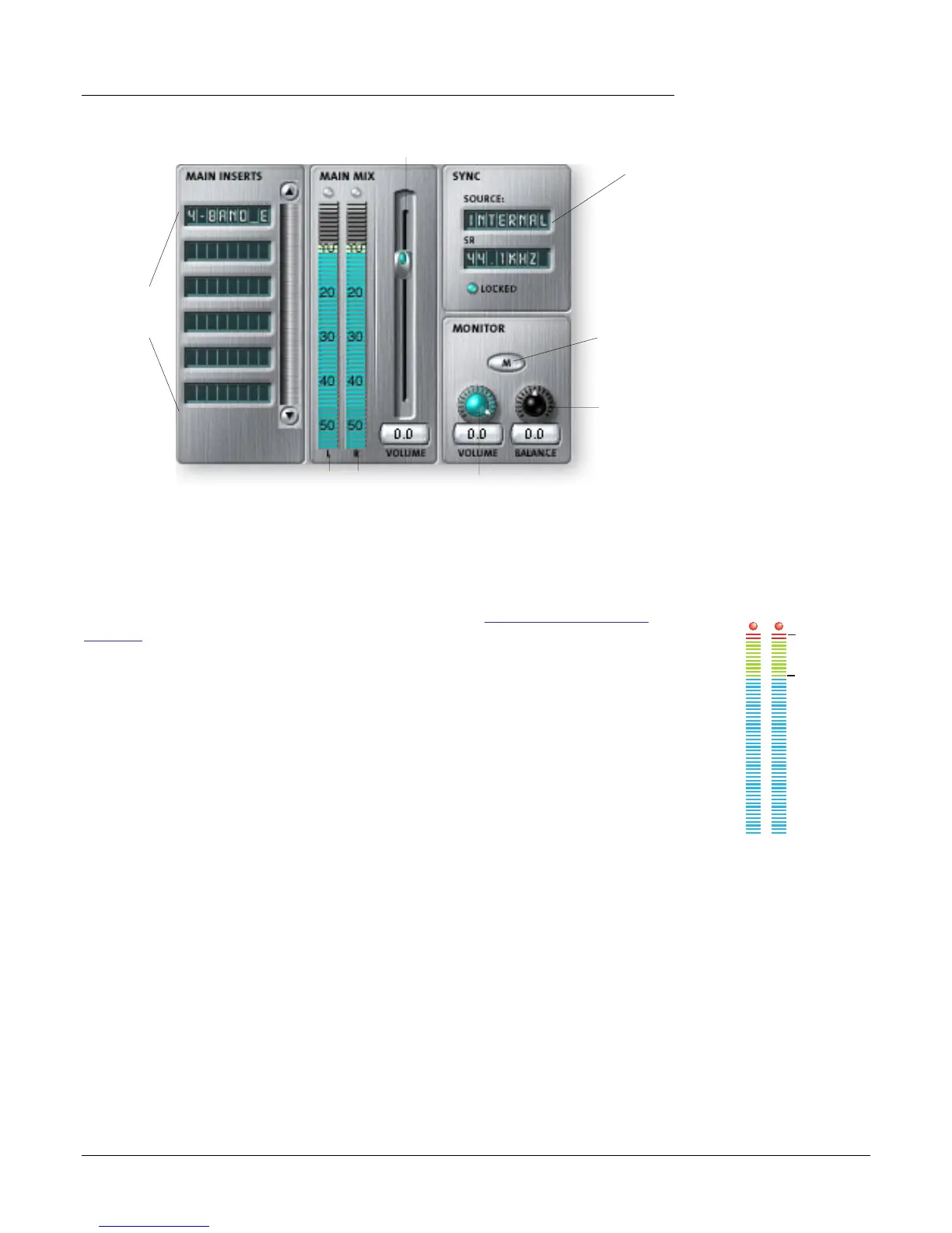 This stereo bar-graph meter reflects the digital level at the output of the mixer. The