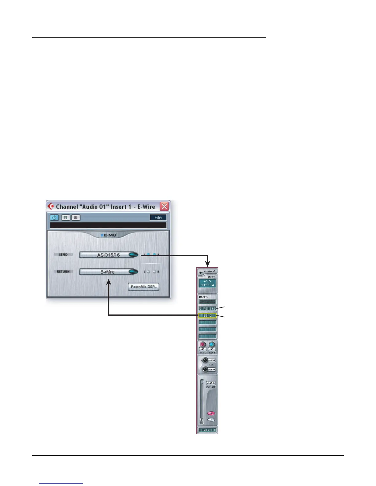 audio to a strip containing the desired effect. An ASIO Send routes the audio back to E-Wire VST.