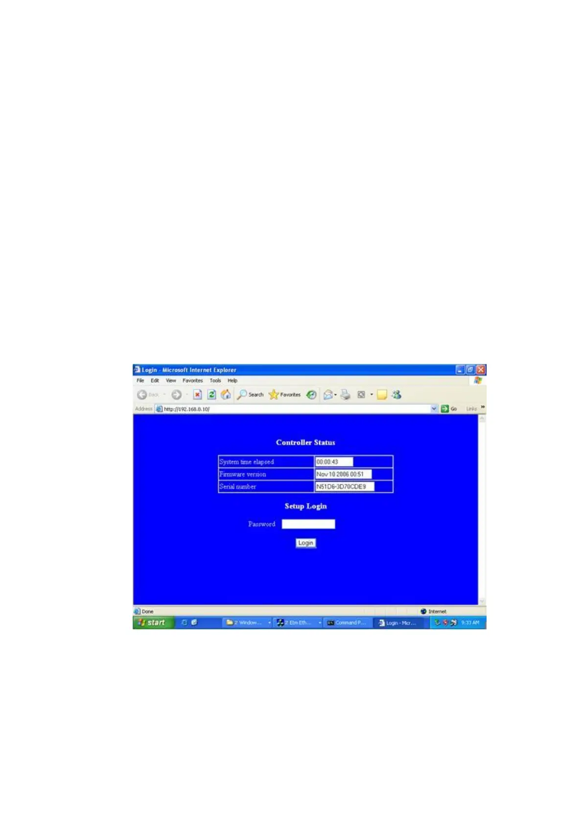 The “Controller Status” page will be shown (see Figure 3.6).