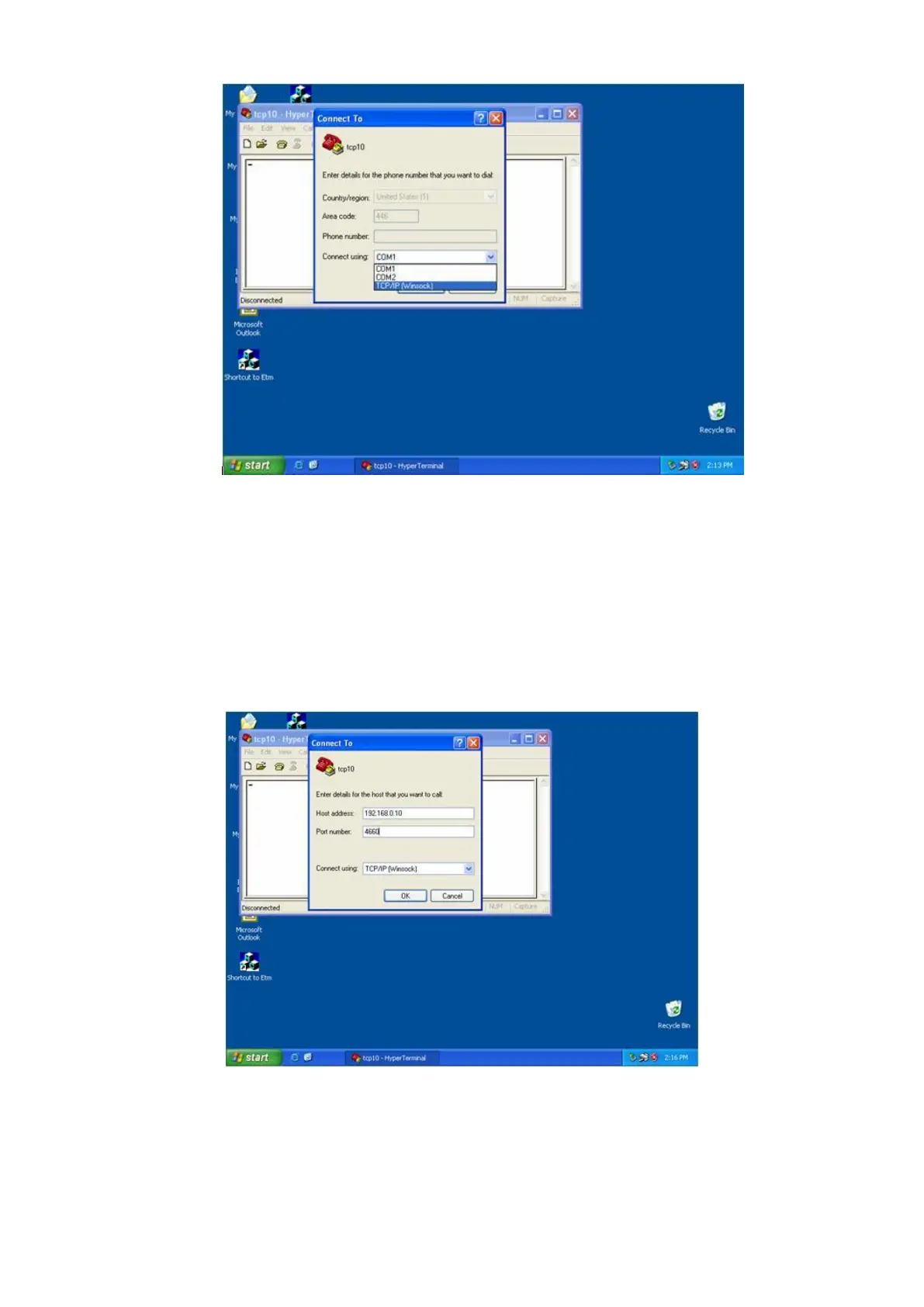 for Serial Port 1 at “Port number” field (e.g. 4660). (The Socket type of the