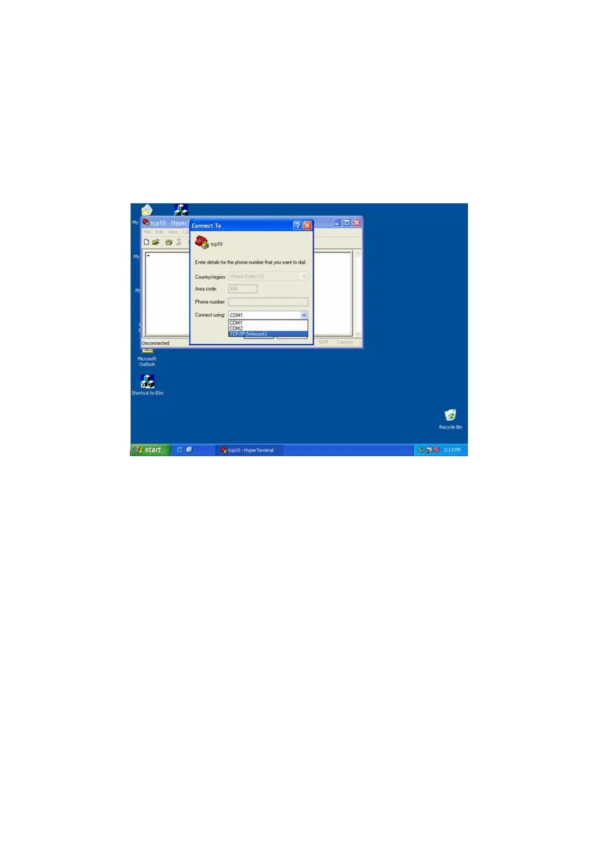 COM 1 or other COM port instead of “TCP/IP (Winsock)”). To set COM port