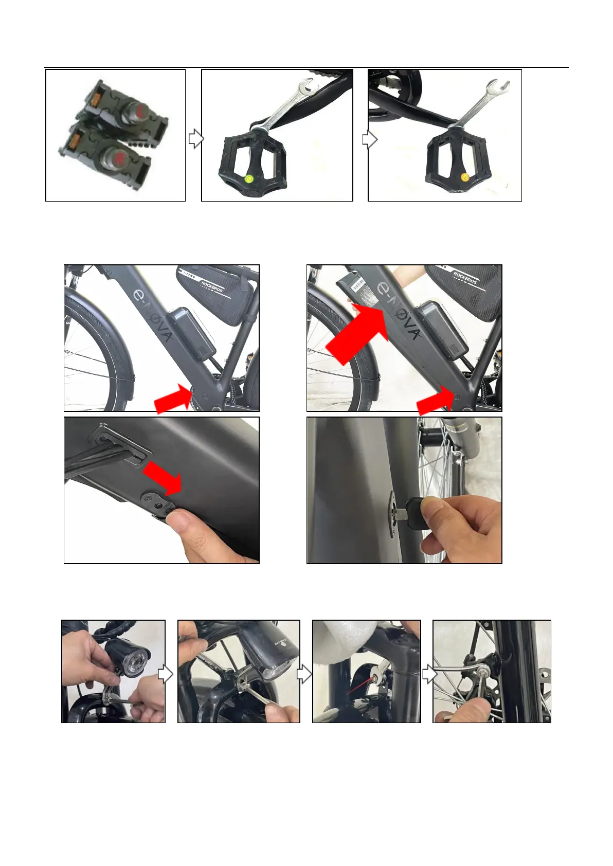 frame to lock. ④ Check the key then confirm the battery is locked.