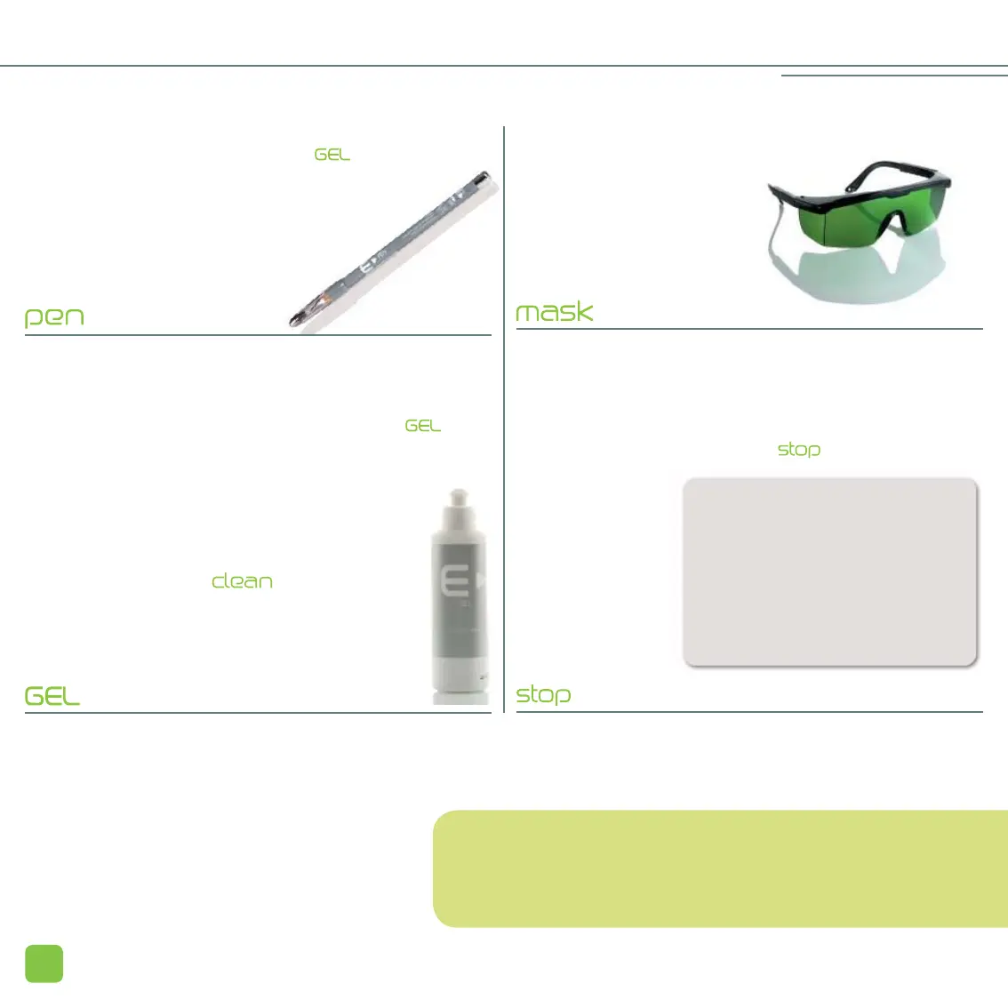 (e.g. tattoo). The glass tip of the applicator (optical guide) can also