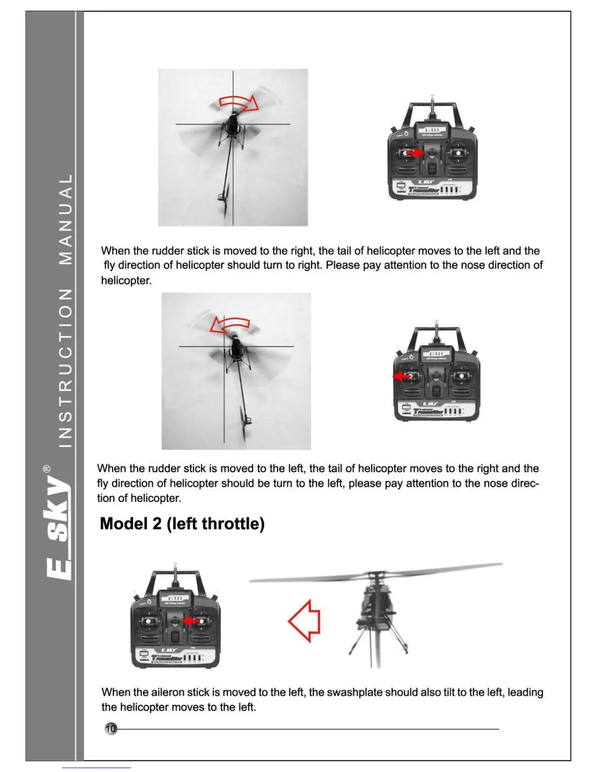 E sky EK2-0404 - Model 2 Transmitter Controls; Left Throttle Operation