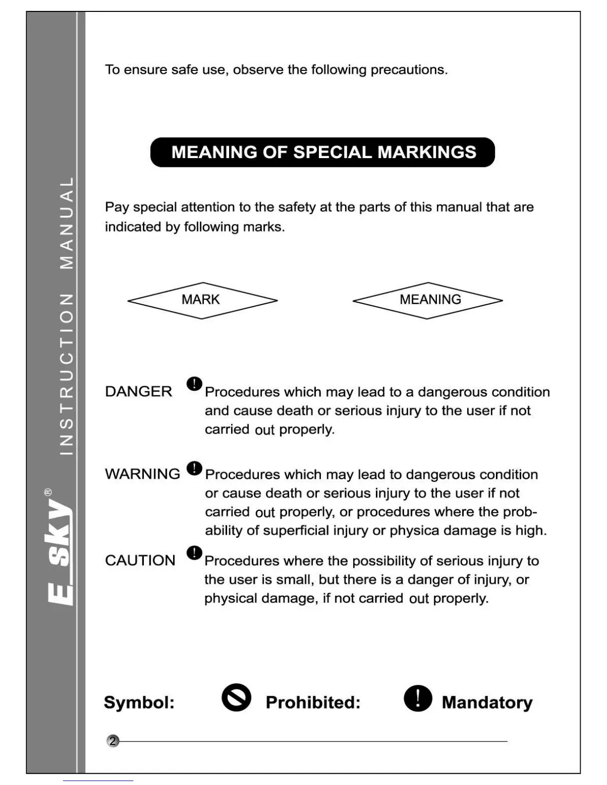 E sky EK2-0406A - Meaning of Special Markings