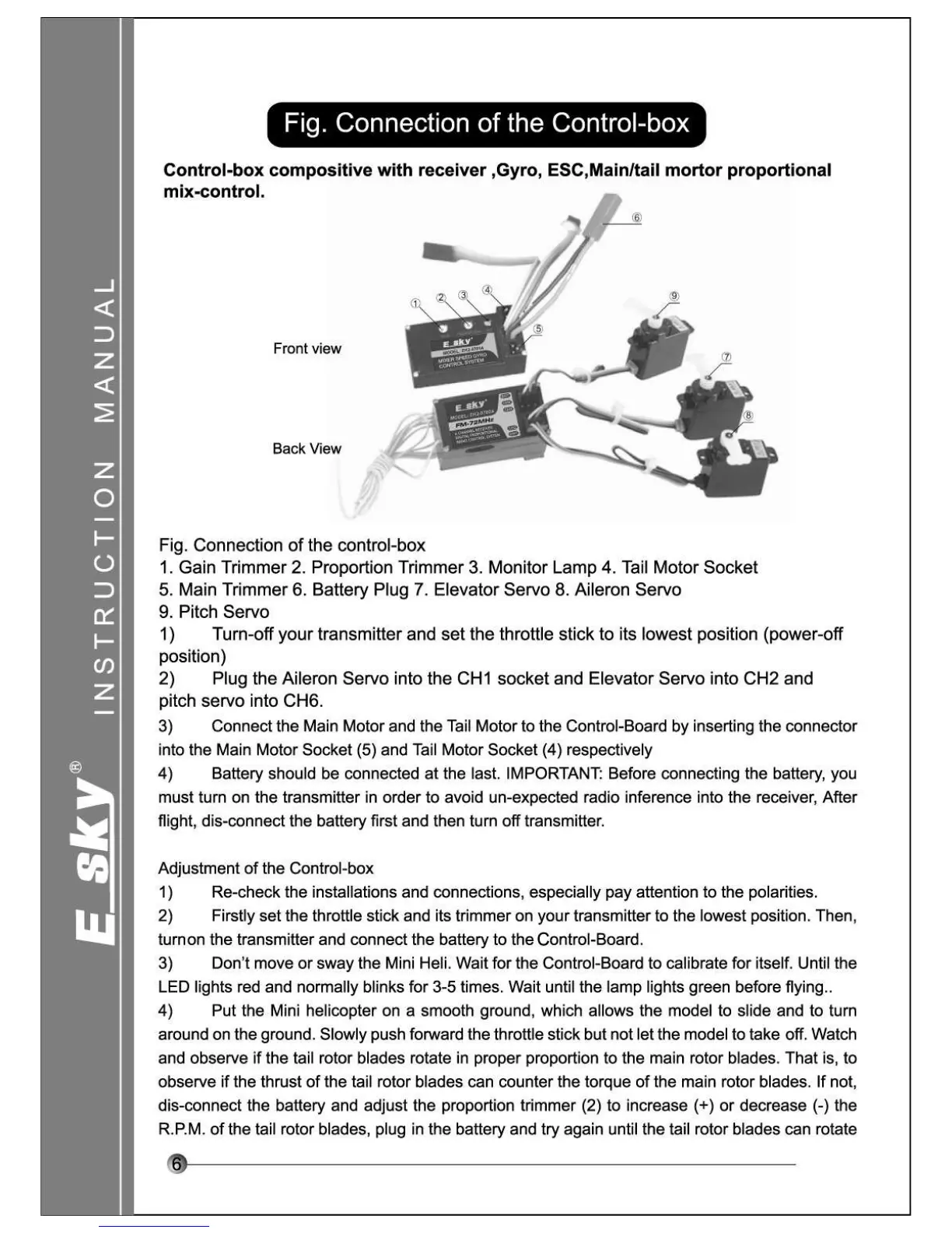 E sky EK2-0406A - Control-Box Connection; Adjustment of the Control-box
