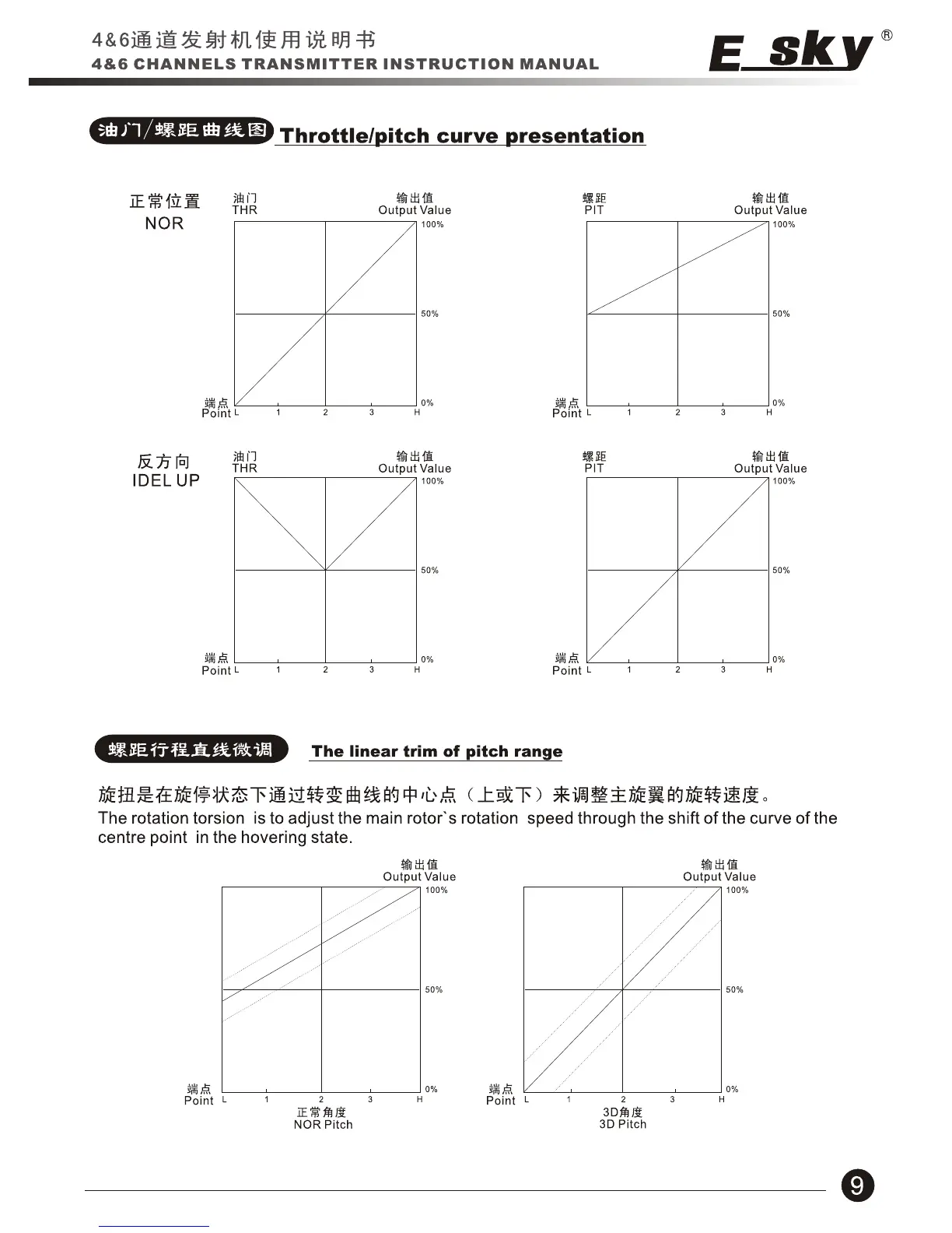E sky ET4 - Throttle;Pitch Curve Presentation; The Linear Trim of Pitch Range
