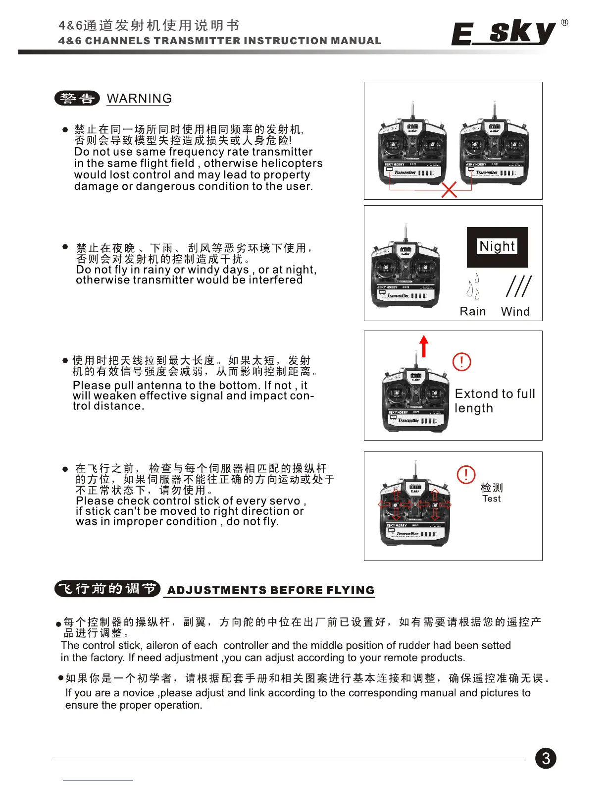 E sky ET6I - Operational Safety and Pre-Flight Checks; Pre-Flight Adjustments