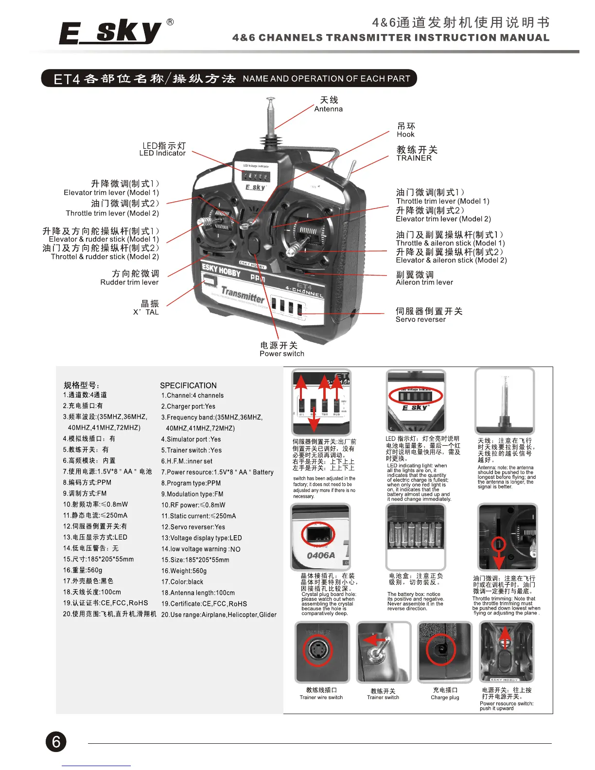 E sky ET6I - Name and Operation of each Part; Product View - ET4; ET4 Specifications