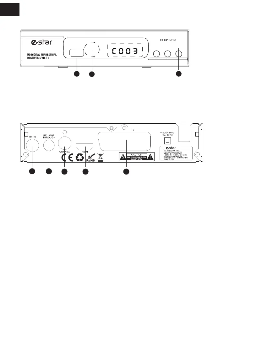 2. STANDBY INDICATOR: Used to visually show power state of the set top box, the green LED will be light if turned on the set top