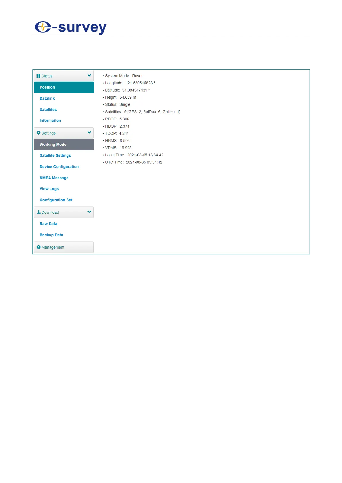 e-survey E600 - Position