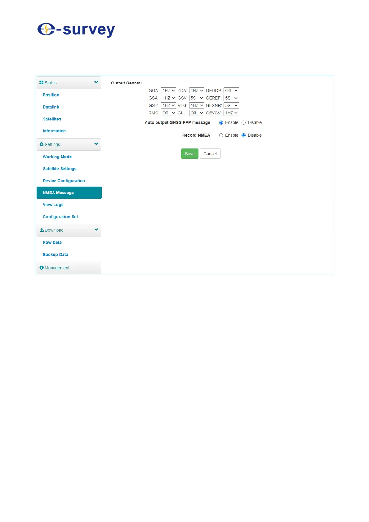 In NMEA Message page, you can do the following: