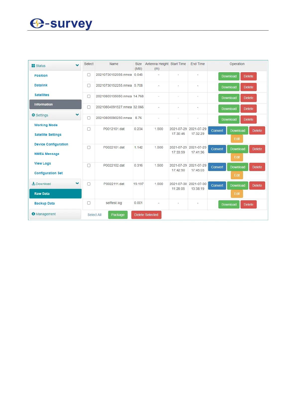 Download raw data and NMEA data.