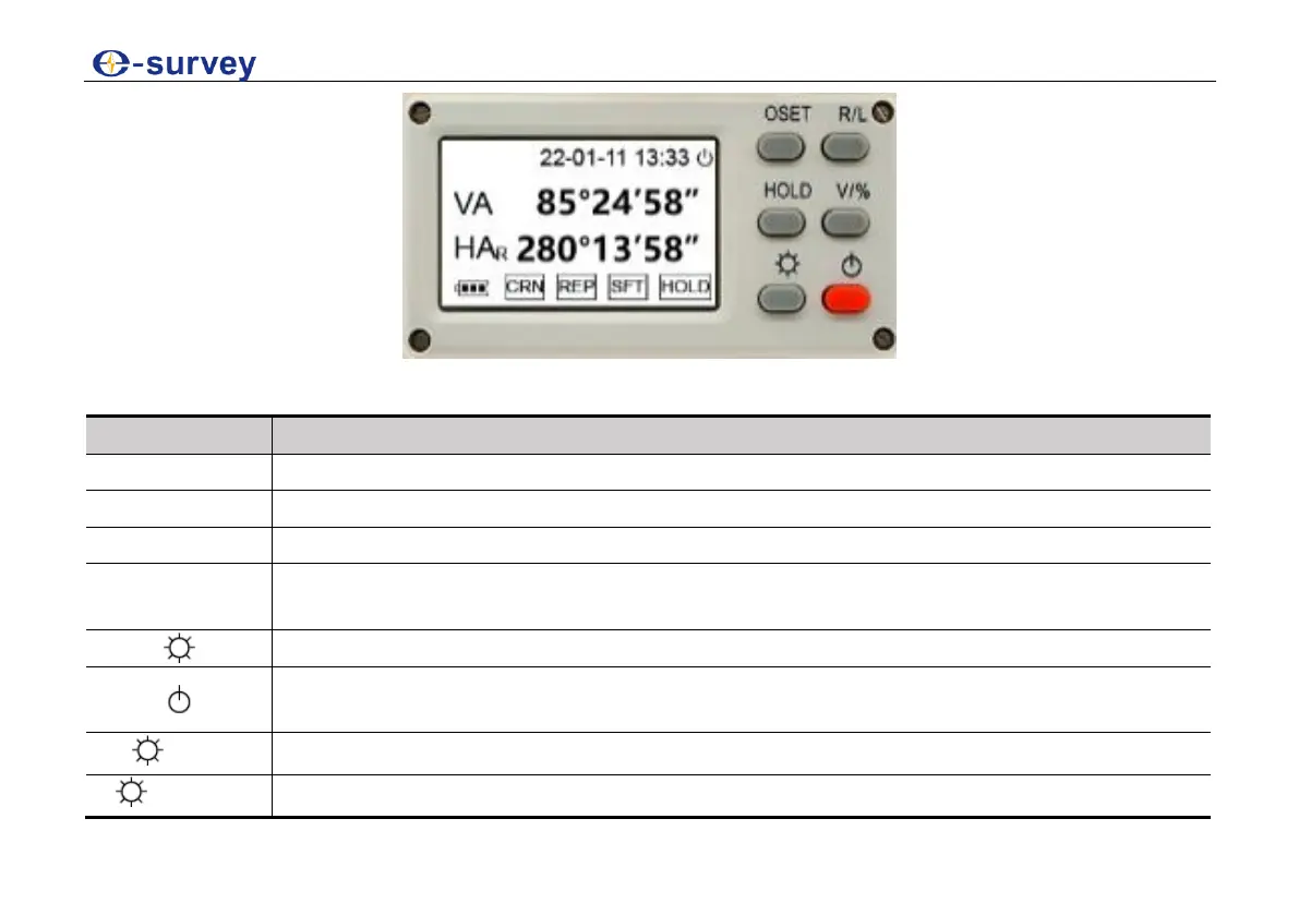 Power on or off the instrument by pressing 3 seconds and turn on or off the laser