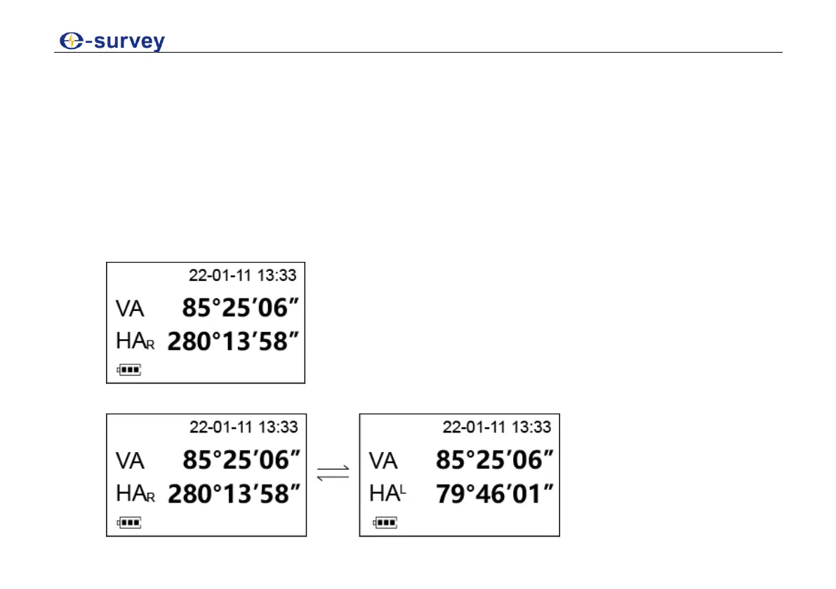 4. Press 0SET again to set the horizontal reading of target A as 0°00'00".