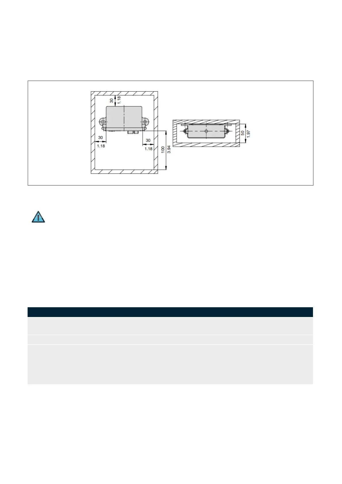 Table 8: Mounting of the device