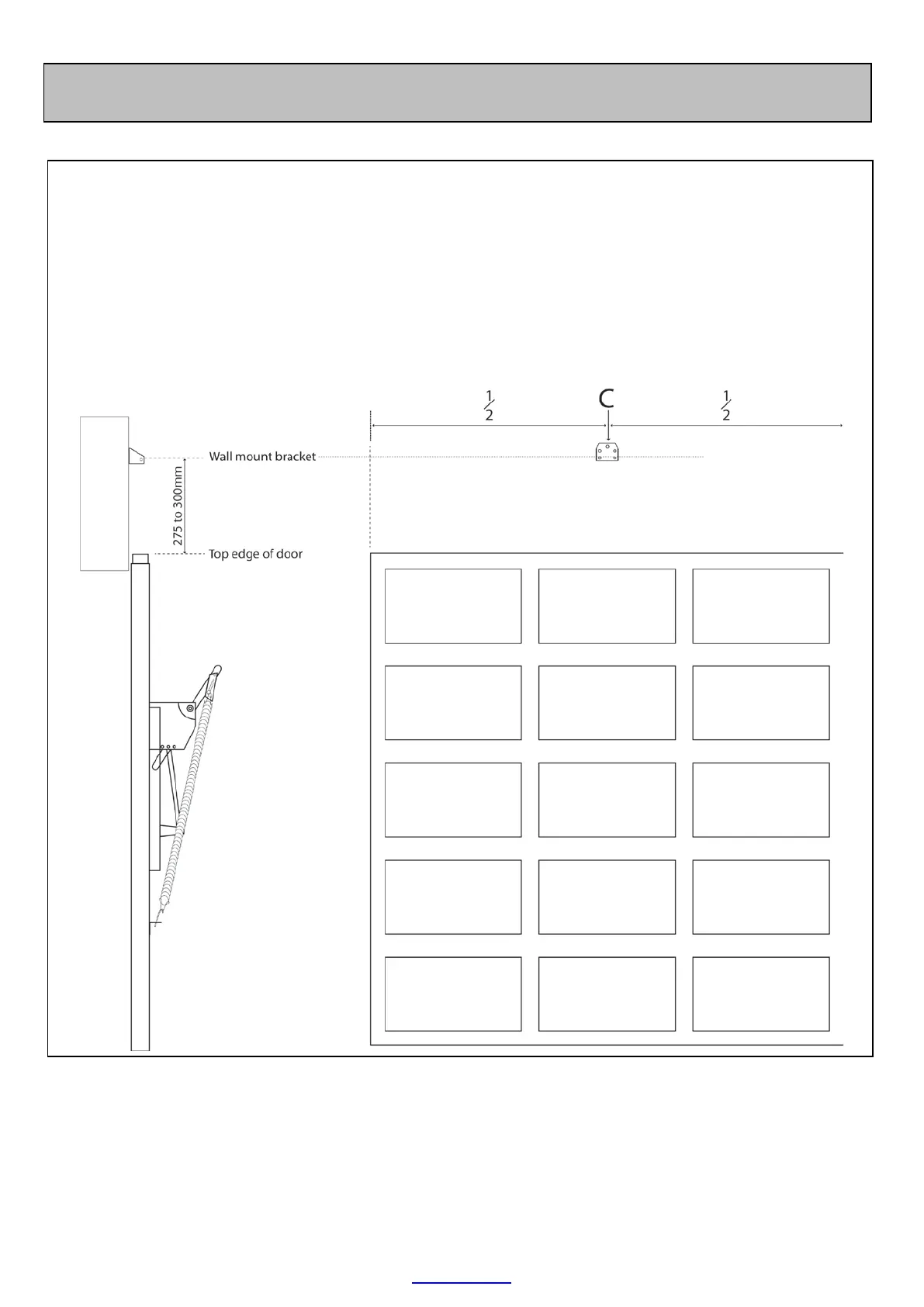 edge of the door. Install the wall mount bracket at this height where it is positioned above the centre of